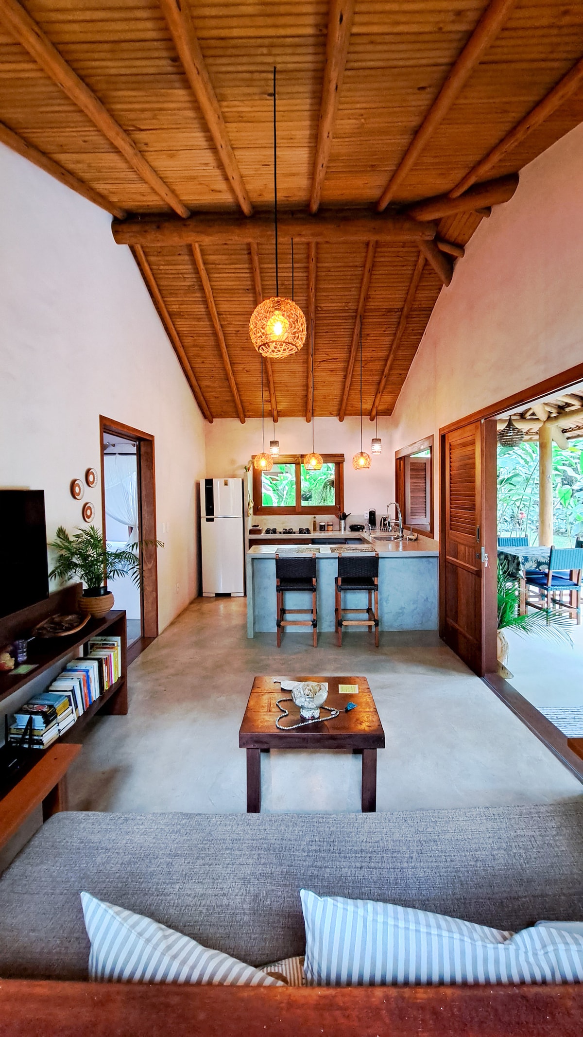 A nossa casinha foi pensada com muito carinho para trazer o máximo de conforto aos nossos hóspedes, desde uma jacuzzi incrível super privativa no deck da sua suite, enxoval inteiro de 400 fios a uma internet excelente de 200 Mb em fibra ótica para quem está de homeoffice. Nossa Vila tem 2.200 m² com lindas árvores que proporcionam um espetáculo a parte. Temos visitas diárias de 3 espécies de macacos, diversos pássaros e até bichos preguiça. :) Estamos a 2km do Quadrado e 3 km da praia + próxima