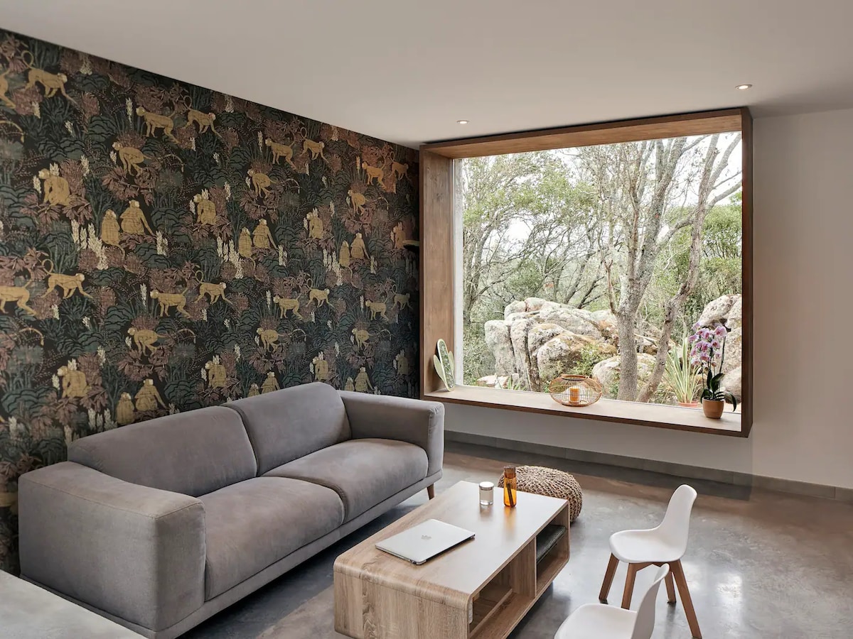 🌿 U Cantonu di l’Arti – Villa d’architecte avec piscine chauffée et vue montagne située à Sotta 🌄 Nichée dans un cadre naturel préservé, U Cantonu di l’Arti est une villa d’exception où l’architecture moderne se marie parfaitement avec la beauté sauvage du paysage corse. Conçue pour se fondre dans la végétation et les rochers environnants, cette villa vous invite à vivre un séjour raffiné, alliant confort, calme et vue imprenable. PISCINE FERMÉE DU 1ER DÉCEMBRE AU 1ER AVRIL
