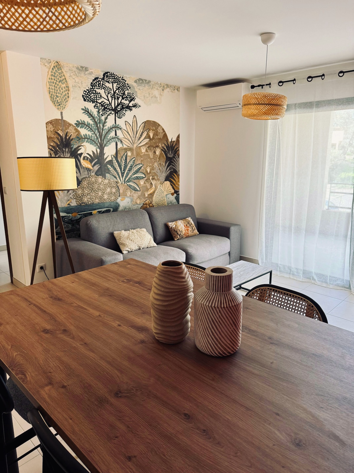 Appartement cosy, spacieux et très lumineux. Entièrement équipé et climatisé avec vue montagne et jolie terrasse. Idéalement situé en centre-ville et à 500 m du port de Porto-Vecchio, vous aurez tous les commerces à proximité pour faire vos courses à pieds : boulangerie, pharmacie, restaurants, café, épicerie, boutiques, ... Parking privé au pied de l'immeuble. Linge fournit. Nous pouvons dans la mesure du possible être flexible sur les heures d'arrivées et de départ, nous consulter.