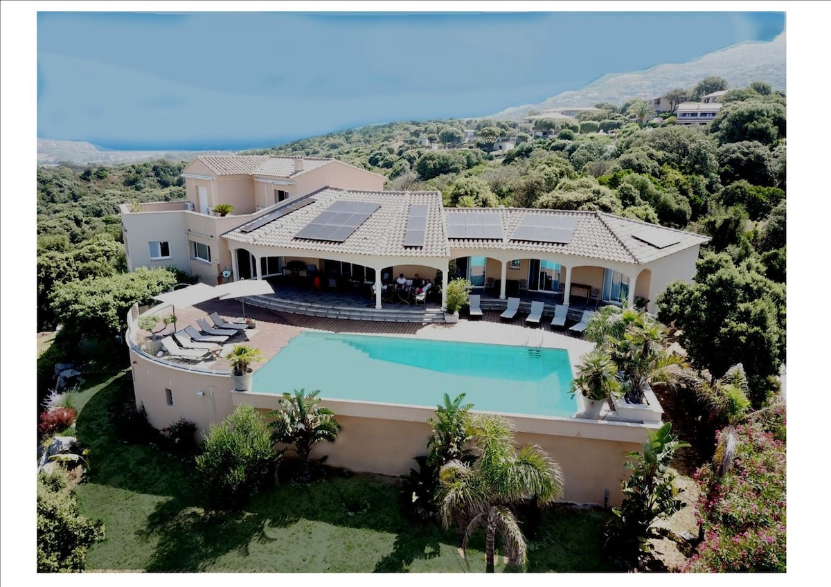Superbe villa, 5 chambres, 5 salles d’eau, 260 m2, avec vue dominante sur la baie de Palombaggia, une des plus belles plages de Corse. La décoration et les matériaux vous charmeront, l'emplacement et la vue vous combleront. Copropriété sécurisée avec gardien et barrière. En résumé, vous serez séduits par cette maison sur 2 niveaux, 5 chambres, 5 salles d’eau, 3 wc, ses 2 cuisines très bien équipées, sa piscine chauffée, sa grande terrasse panoramique , borne de recharge électrique pour voiture