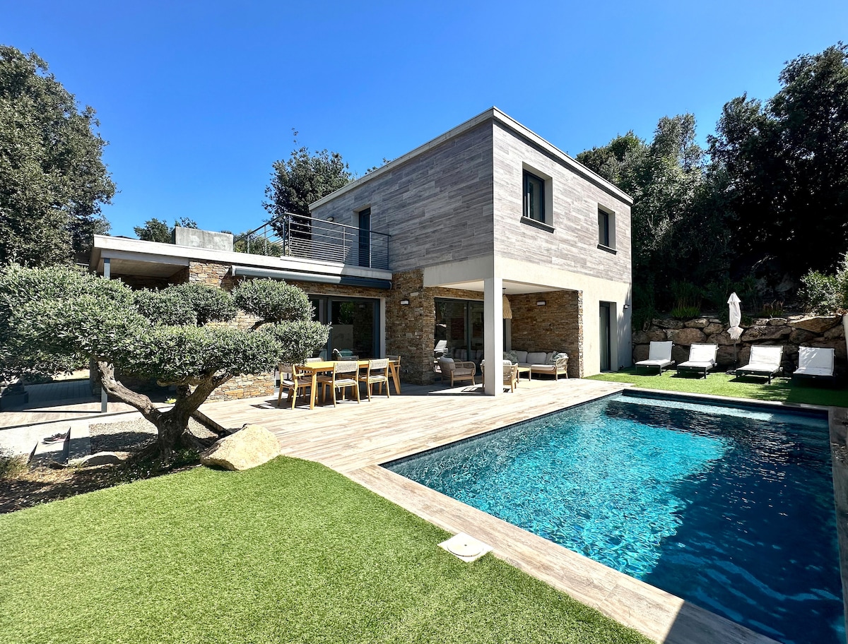 Un véritable petit nid au cœur du maquis Corse. Cette villa privée, séduit par sa décoration soignée, mêlant avec justesse authenticité et modernité. On s’y sent immédiatement bien. Blottie entre les rochers de granit et les essences nobles du maquis, une piscine privée avec banc balnéo vous attend — chauffée en avril/mai et septembre/octobre pour un confort optimal. À l’intérieur, l’espace, cosy et parfaitement équipé, offre tout le standing nécessaire pour des vacances réussies.