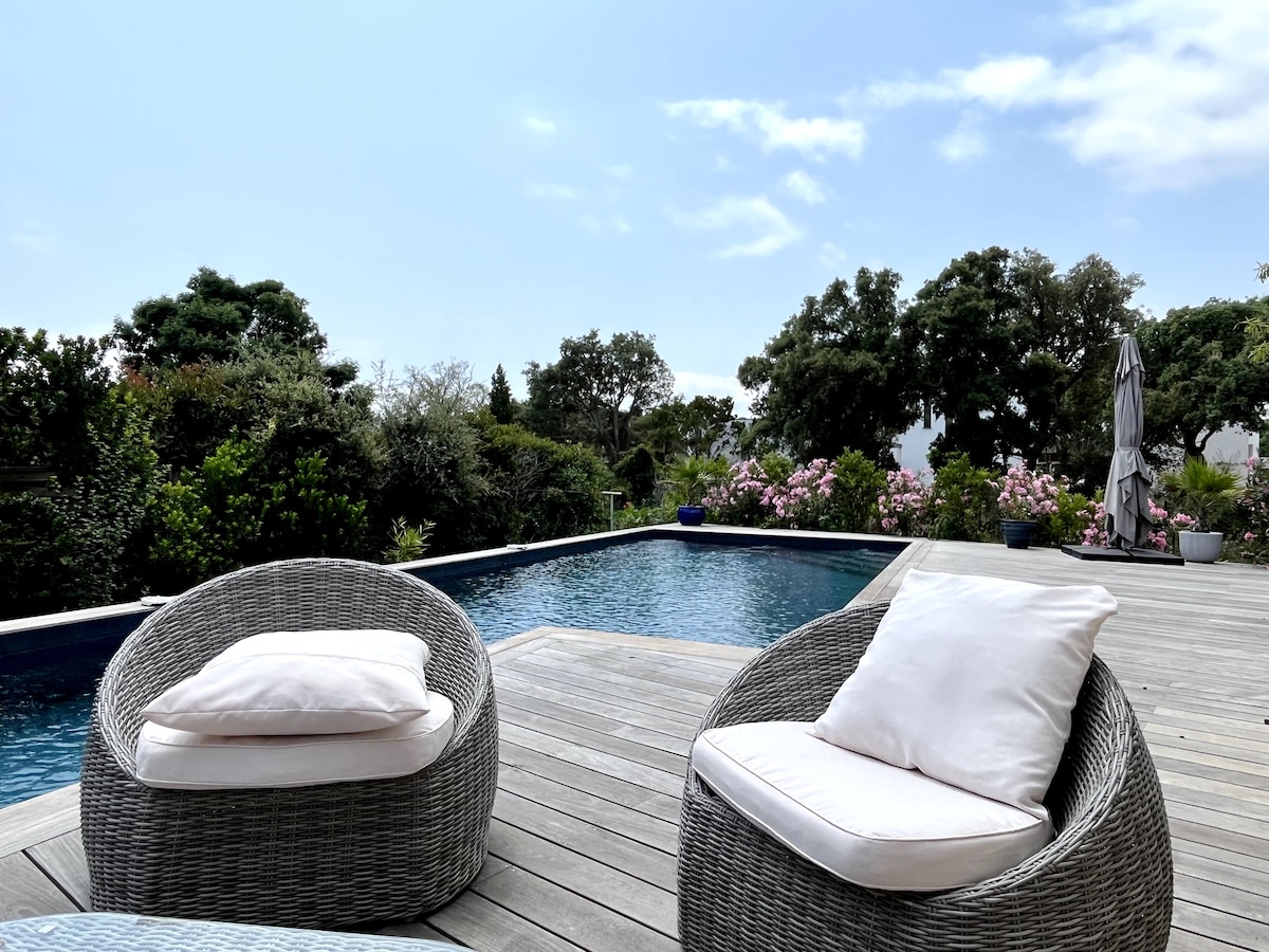 Plongez dès votre arrivée dans l’univers paisible de la Bergerie en vous prélassant sur les transats et coussins, autour de la magnifique piscine privative chauffée et des coins détentes ombragés arborés et cocoonings ( oliviers, oranger, néflier), le coin cuisson extérieur avec plancha à gaz saura ravir vos papilles et ainsi graver dans vos cœurs ces moments de partage. Commerces à 2mn à pied ( boulangerie, épicerie, tabac, restaurants) La bergerie se situe à 15 mins des plus belles plages