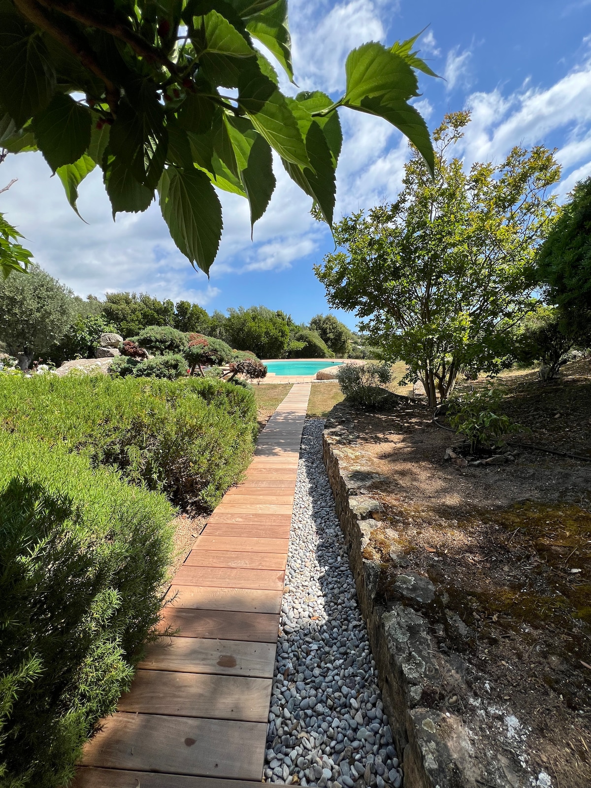 VILLA PANORAMIQUE avec VUE IMPRENABLE SUR MER ET PLAGE DE PALOMBAGGIA. Située sur les hauteurs de l'hôtel Relais & Châteaux Les Bergeries de Palombaggia, notre Villa - toute équipée - vous propose 4 chambres, une grande pièce de vie avec une terrasse proposant bains de soleil et jacuzzi, et tout le confort nécessaire pour faire de vos vacances, un moment privilégié au milieu du maquis corse. La plage , à 700 m de notre villa, est accessible en 15 min, par un chemin privé à pieds.