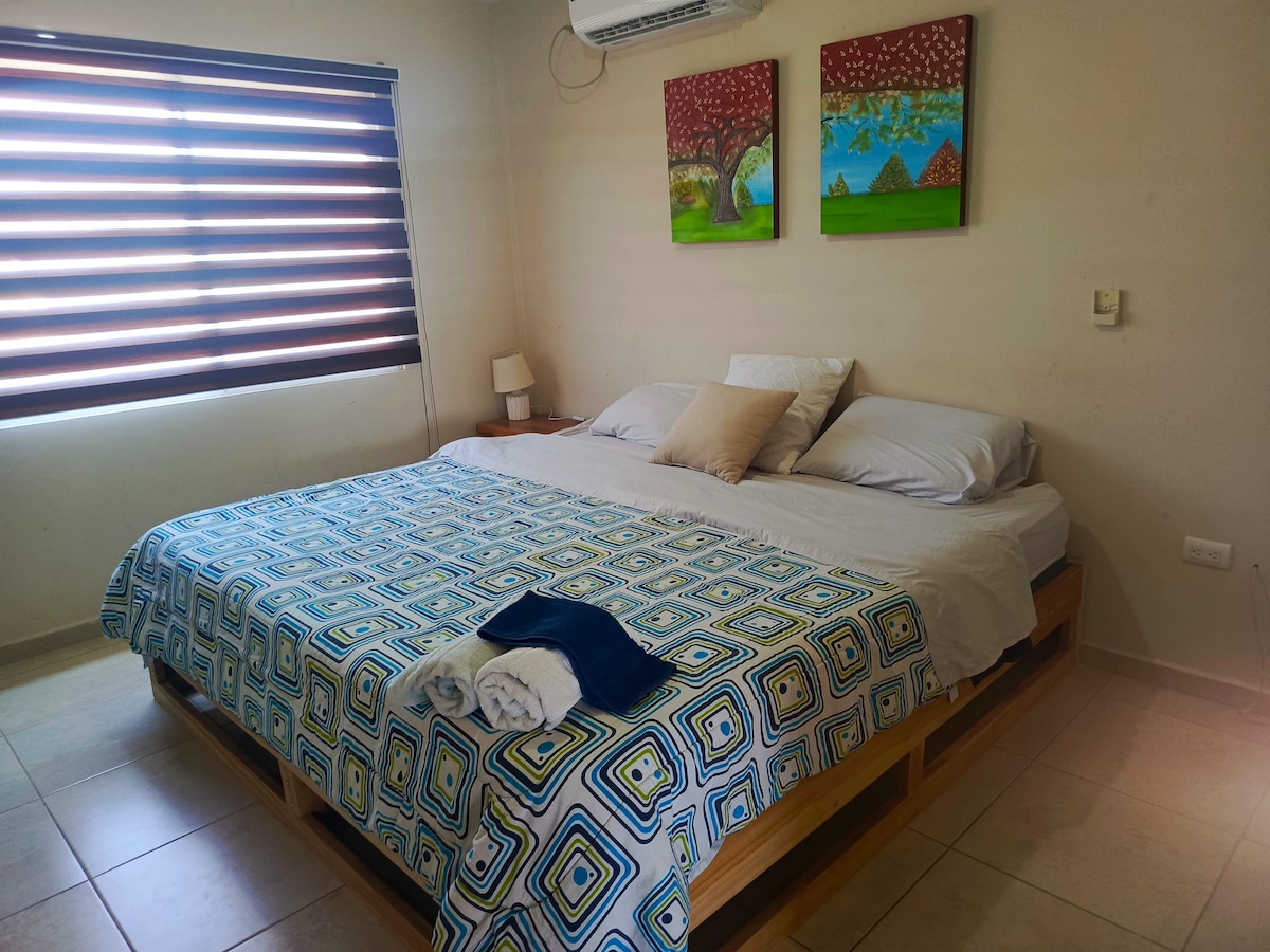 Relájate en este espacio tranquilo y elegante, donde te espera un departamento completo. Disfrutarás de numerosas comodidades, incluida una cocina completamente equipada con todos los utensilios necesarios para preparar exquisitos platos, así como una acogedora habitación con aire acondicionado para garantizar un descanso óptimo. Además, podrás deleitarte con un patio lleno de plantas, perfecto para disfrutar del aire libre y la serenidad que brinda la naturaleza