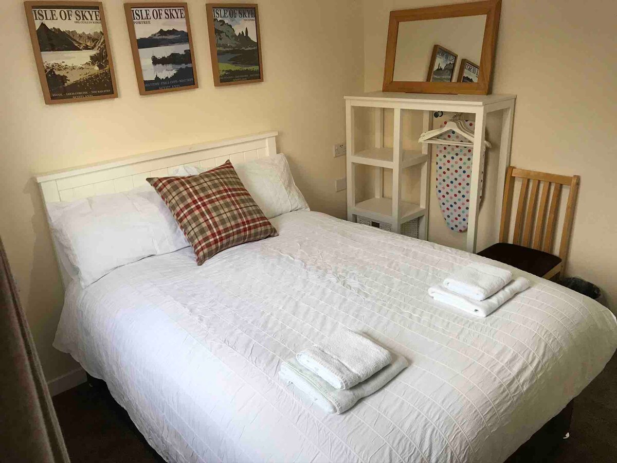 We offer personalised holiday planning with your stay. We'll guide you towards unforgettable, often overlooked experiences on the island. Our bright, spacious living room boasts stunning landscape views. Just a 5-minute walk from the town centre, the best pubs, restaurants & live music are within your reach. Local boat trips, wildlife, and the Scorryfalls waterfall are a stroll away. Relax with Superfast Broadband, 50" TV, Netflix, and a Sonos Speaker. You won't find a better Skye experience.