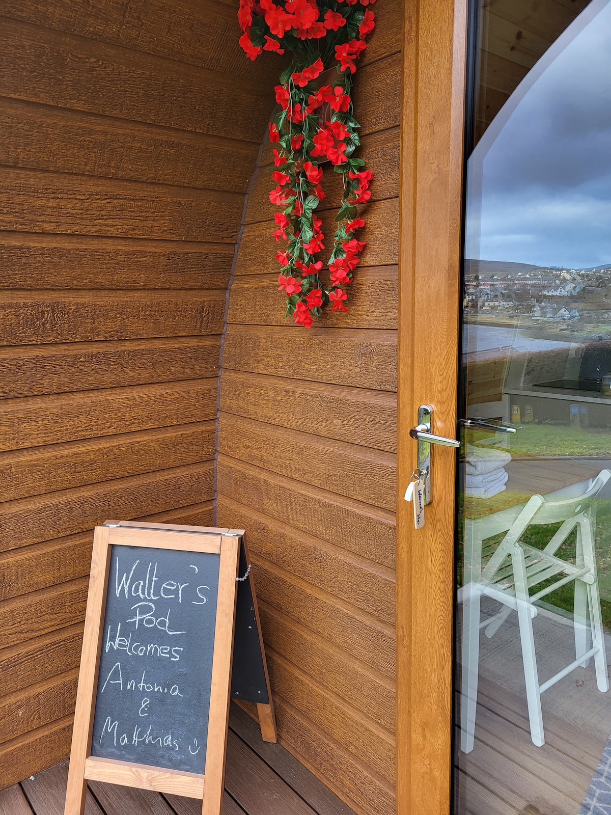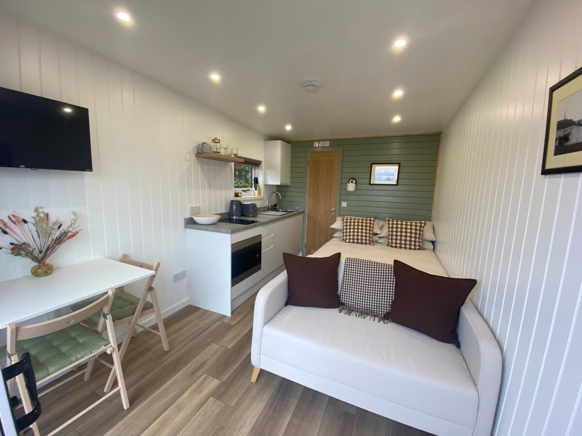Our Garden Chalet is a lovely little space located in the grounds of Dunborrodale bed and breakfast. Close enough to walk into the village but a lovely quiet place to relax in. The Chalet is compact but a perfect space for two with a double bed, Kitchen area, table and chairs with wifi and TV. Featuring a modern bathroom with shower and heated towel rail. With views of our garden from the windows we can offer you a cozy stay. We provide parking within our home.