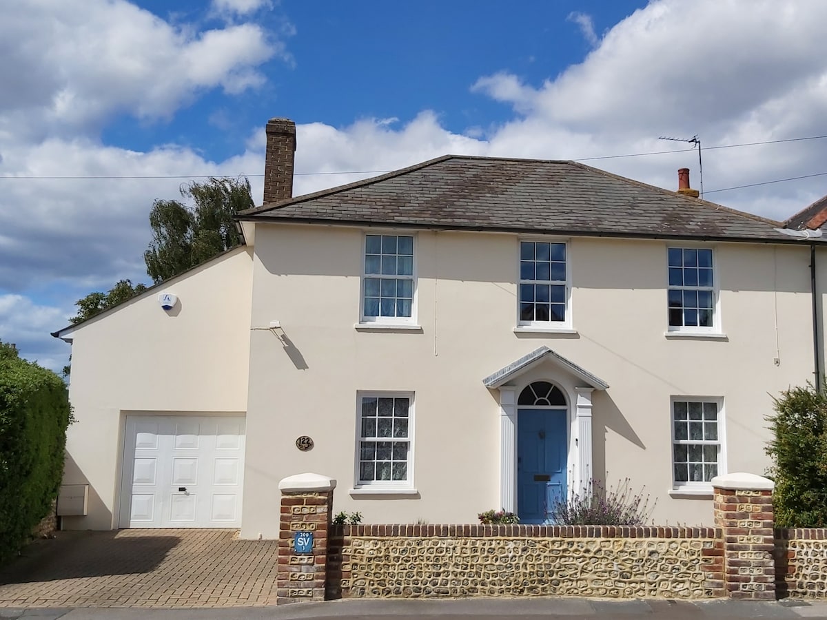 Our home is a beautiful 17th Century Town House, with a walled garden, in the ancient city of Winchester. Ideally situated for walking throughout the city with its magnificent 900 yr old Cathedral, William the Conqueror's Great Hall, King Arthur's Round table, Winchester College, England's oldest Public school. 1hr by train from London, 1hr from Heathrow, close to the New Forest, the South Downs, the South Coast, Jane Austen's home. Our house is 4 mins walk from the station.