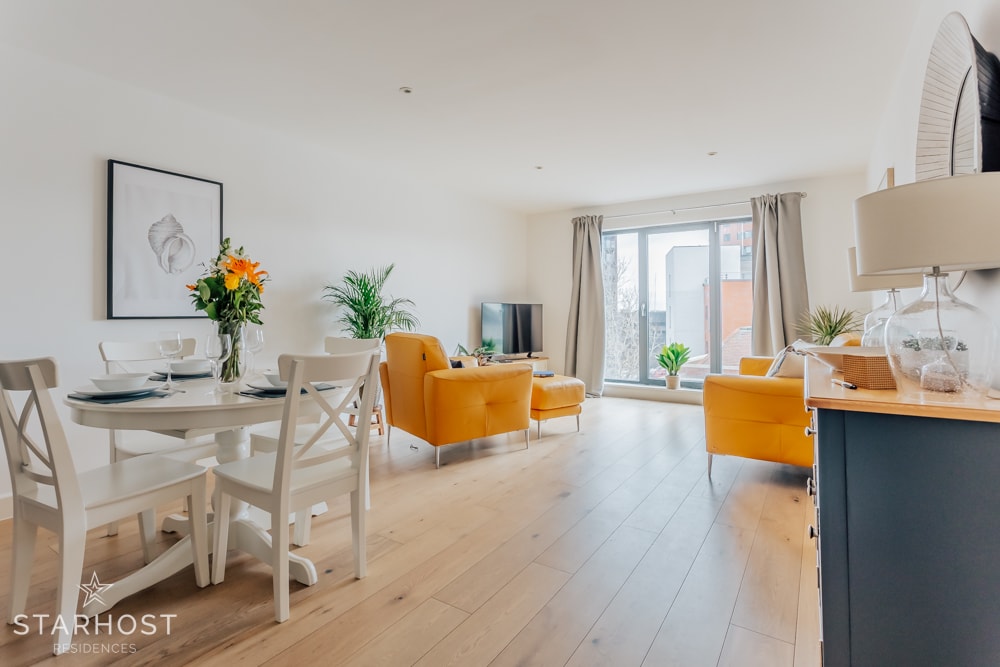 Positioned right in the heart of charming historic Winchester The Sky Penthouse offers luxury modern comfortable 5 star accommodation . Private parking for one car . Positioned an easy level 300 meter walk from the main High Street within the City Centre , 400 meters from Winchester Cathedral and 500 meters from Winchester train station. Great location with a garden. Guests can choose the bed configuration of both the double bedrooms, either 6ft wide super king luxury beds or single beds.