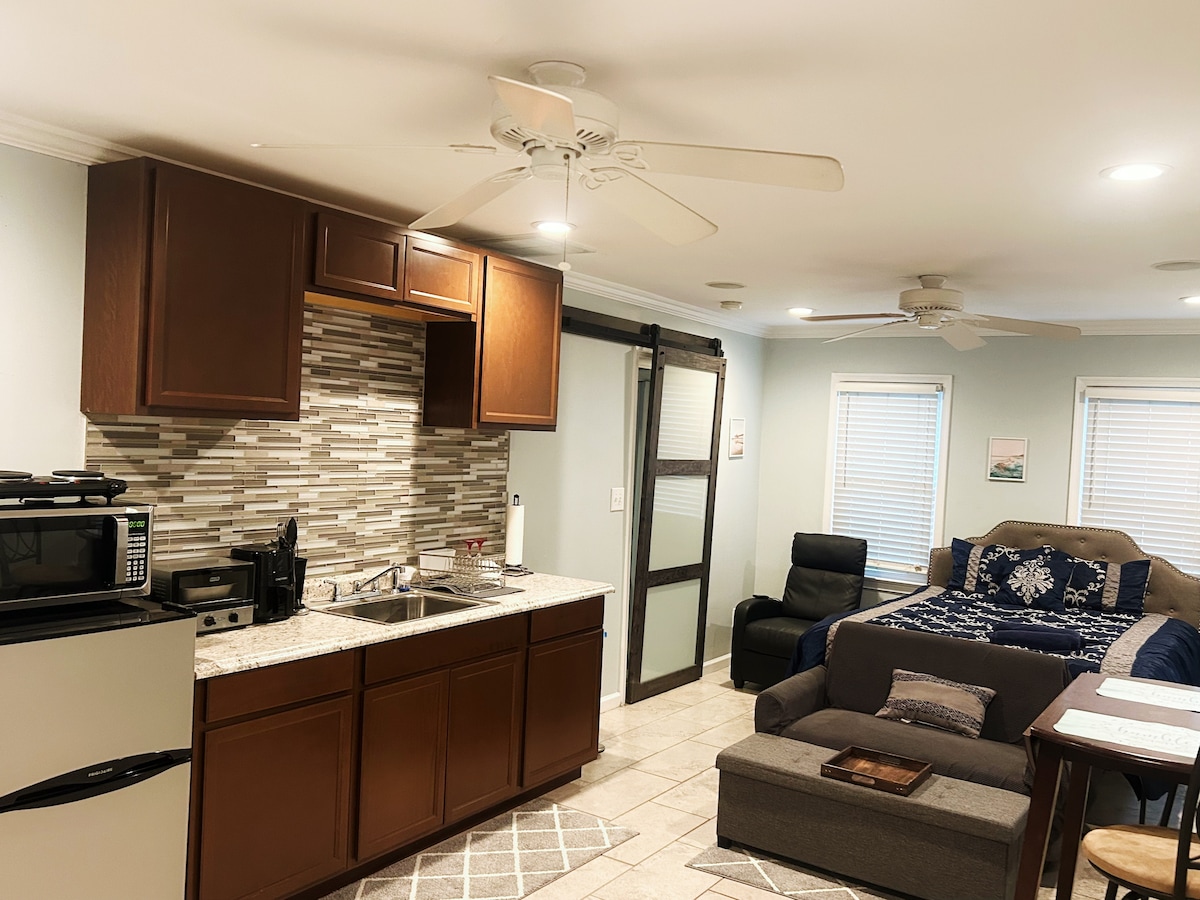 This is a beautiful modern, comfortable, and cozy one bedroom apartment located on the second floor above the car garage. While relaxing or vacationing just know that this apartment is centrally located to Virginia Beach Oceanfront, Outer banks N.C. museums, Colonial Williamsburg, Busch garden, Water Country USA and many restaurant. This apartment is attached to the main home with a dedicated private entrance. This location is safe and private for our guest.