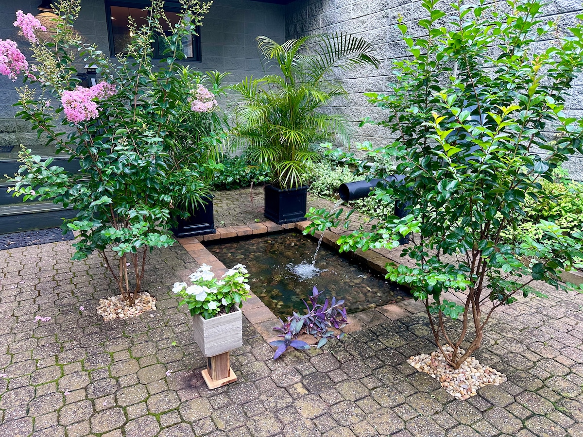 Covered parking with EV Charger. With one acre fenced in yard. 1000+ sq ft Modern Second Floor Guest House apartment with separate private entrance attached to a 10,000+ sq ft Mansion on 3 acres in a very safe, quiet and private neighborhood. Free private parking. Minutes from restaurants, shopping centers, and a beautiful 30 minute drive to oceanfront. Free Netflix, High Speed WiFi, washer, dryer, full kitchen. With Keurig. Brand new Heat and Air Condition! Plus 2 dedicated parking spots.