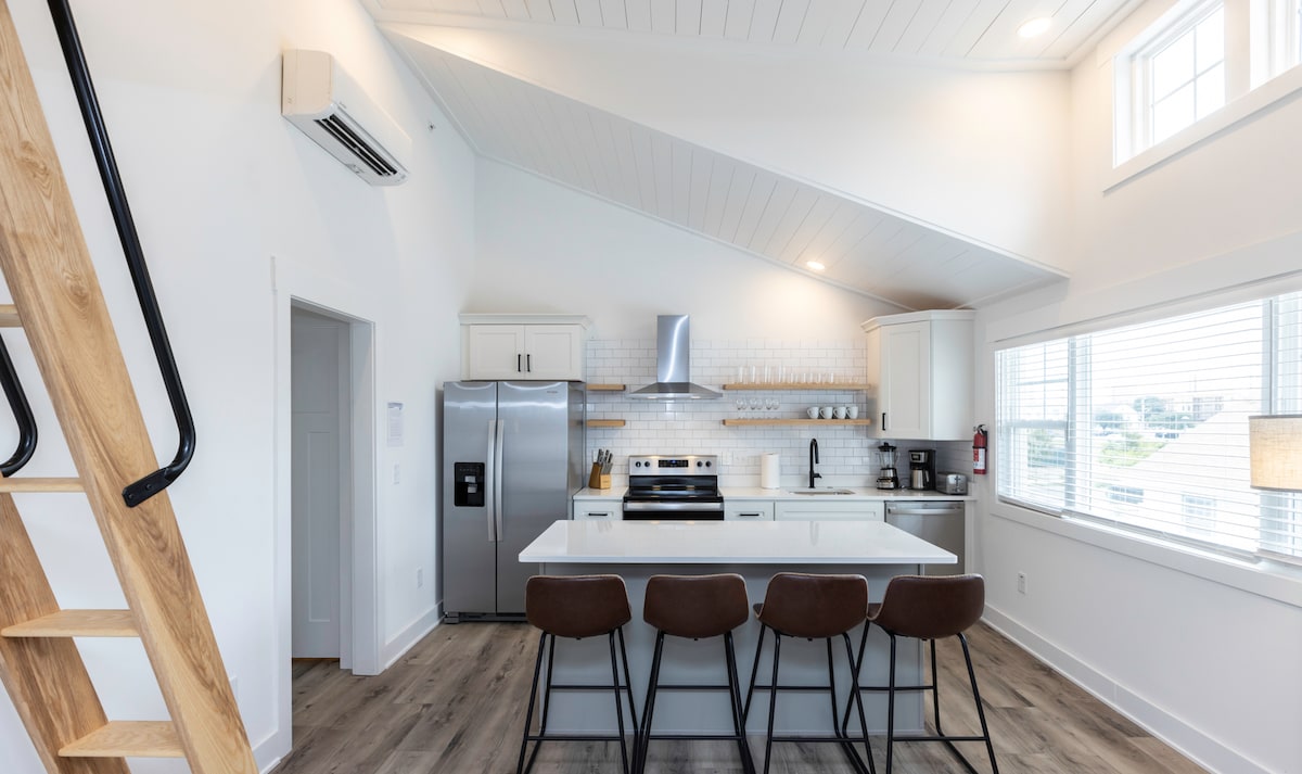 Atlantic Surf Park officially OPEN. Located directly across the street from the Atlantic Park Surf Park, Dome Events Venue, and many new restaurants, this newly rebuilt 1-bedroom unit with lofted ceilings and natural light sleeps 6. Welcome to The Vibe District, a short walk to the beach/boardwalk and the Virginia Beach Sport Center. The VIBE Creative district with phenomenal restaurants, cafes, breweries and an incredible community environment. Sleeping arrangements are 1 king bed in separa
