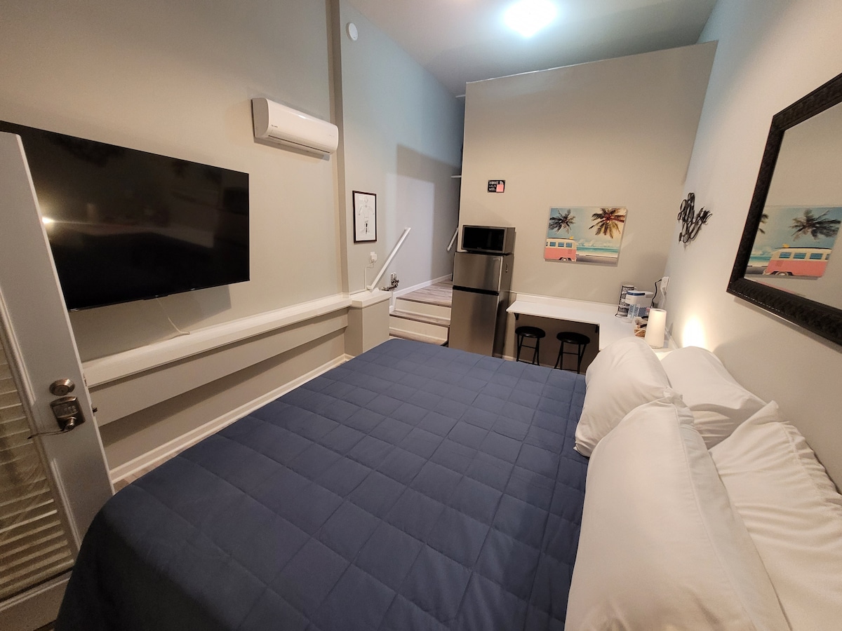Brand-New constructed 1bd/1ba Efficiency Apt sleeps 2 comfortably. Private Entrance, completely separate non-shared bathroom, kitchenette and living space. Excellent location. Walk/Bike to everything in 5 mins including the beach, boardwalk, bike and walking path, waterfront restaurants, pubs & bars. 0.6 miles to the oceanfront 0.8 miles to the VB Convention Center & Sports Plex LINENS & TOWELS PROVIDED 65" Flatscreen TV! King Sized Pillow-Top Bed Refrigerator Coffee Microwave Keypad Entrance