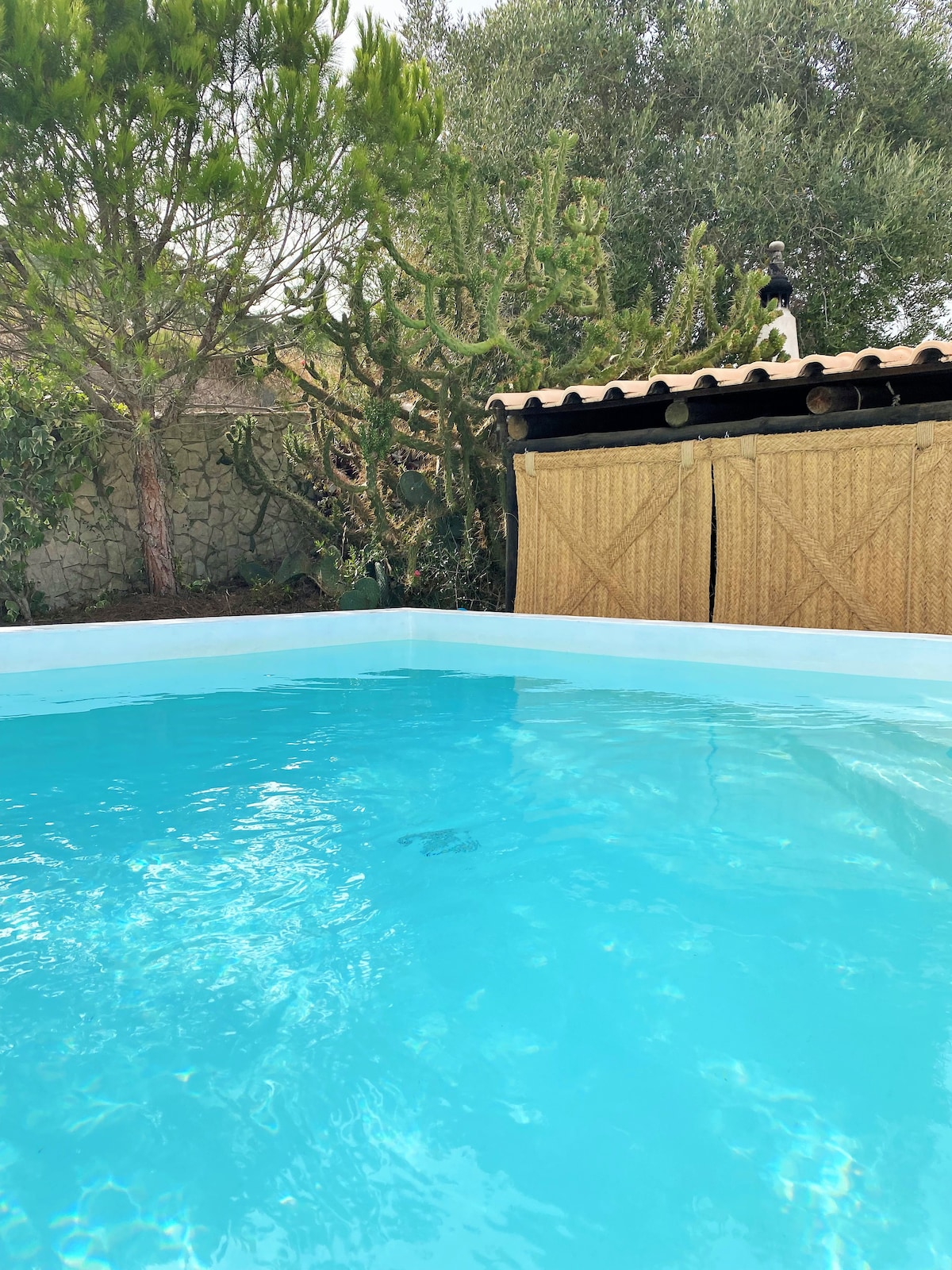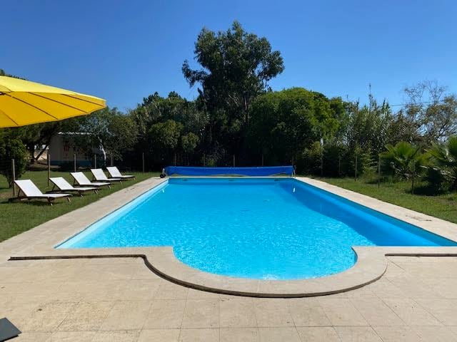 Suite totalmente independente, com wc privado. A cozinha é partilhada com mais dois quartos, jardim e piscina. Cozinha equipada com frigorifico, micro-ondas, chaleira, torradeira, forno eléctrico, uma placa com dois bicos a gás, maq. Nespresso, mesas e cadeiras para refeições. Existe uma churrasqueira partilhada com 2 quartos. Pequeno almoço incluido entre junho e setembro. O alojamento não é adequado para bebés ou crianças pequenas -5 anos de idade. Importante: ler regras da casa.