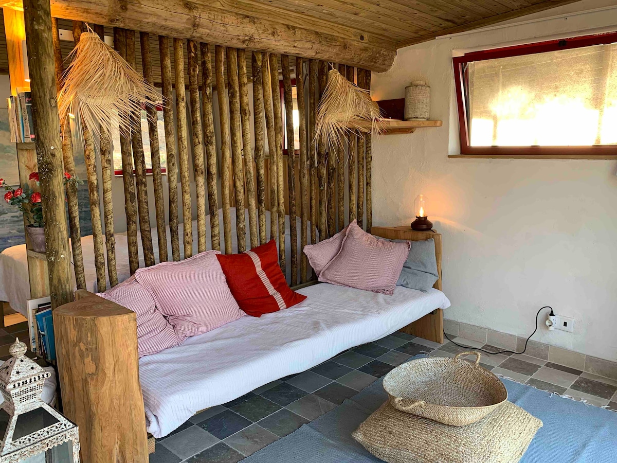 Take a break and unwind at this peaceful oasis.The Perfect little getaway for 2 in a very comfy casita, that has been restored from an old animal stable. With your own outside space with table and incredible views of the beautiful valley. Lots of communal spaces, and a pool. The accommodation has a mini fridge, microwave, coffee maker and kettle and guests are welcome to use the BBQ outside. Lots of peace and birds singing and you can take a walk just outside your door and check the Nabão river