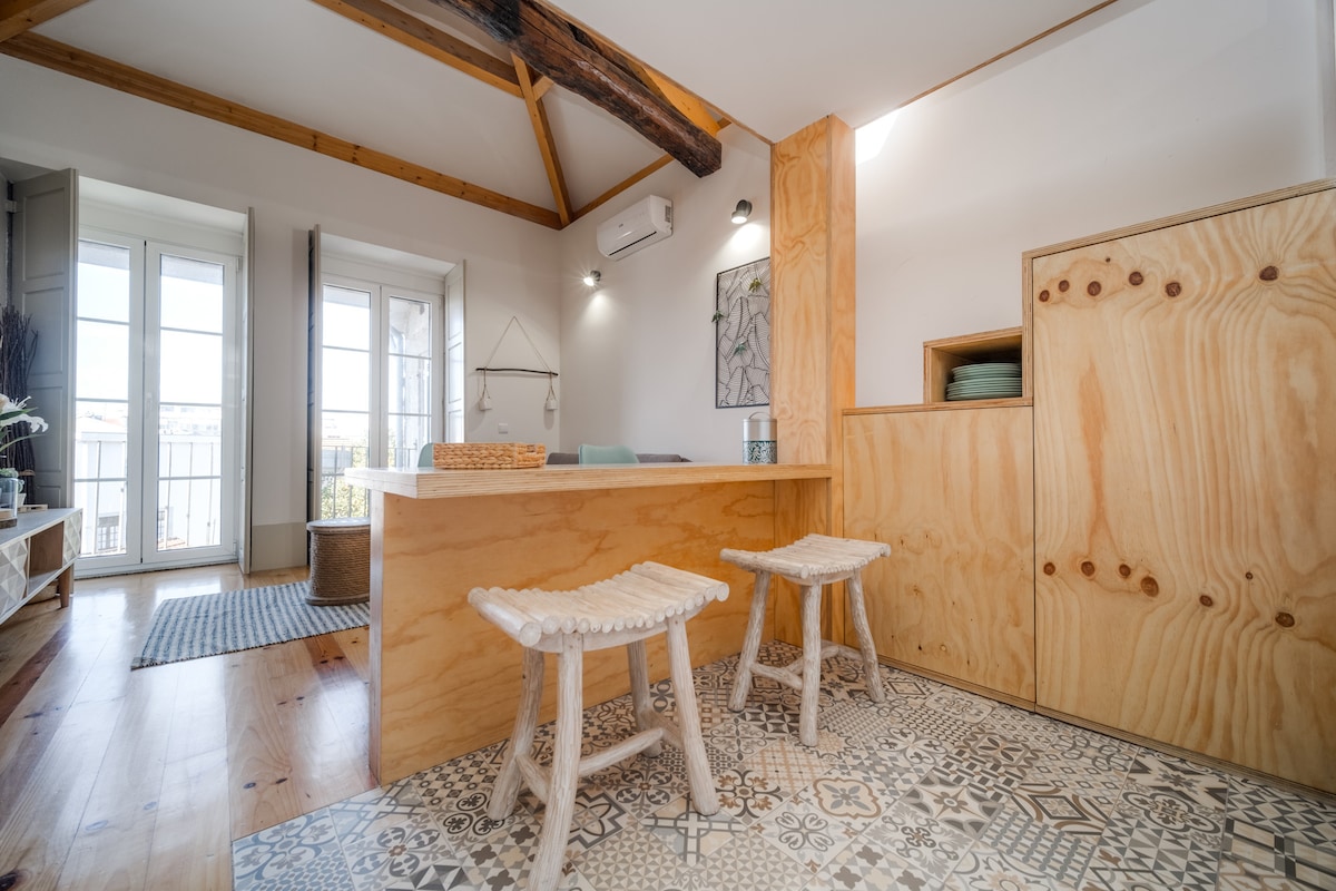 Belonging to Nomad's Bonjardim City Flats collection, the Top Floor is a fully equipped mezzanine apartment with maximum capacity for 2 people. <br><br>On the 2nd Floor and facing the back of the building, it has a private balcony and plenty of natural light, which extends to the entire apartment. <br><br>It is located in the quiet street of Bonjardim, just 5 minutes walk from 'Praça do Marquês', where you will find access to transportation such as metro and buses.<br><br>
