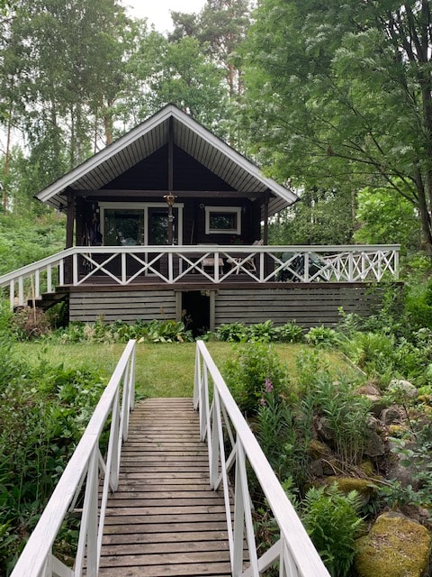 We offer our lovely guesthouse with sauna and a hot tub to Helsinki area visitors who appreciate nature, privacy and maybe a round of golf- we are located right by the 12th green of Kullo Golf and 40km from Helsinki centre. The cottage is an old log building, carefully renovated to preserve its spirit while suiting the needs of a comfort lover. Not included: - Hot tub (80e/ first day, 40e/ each following day)
