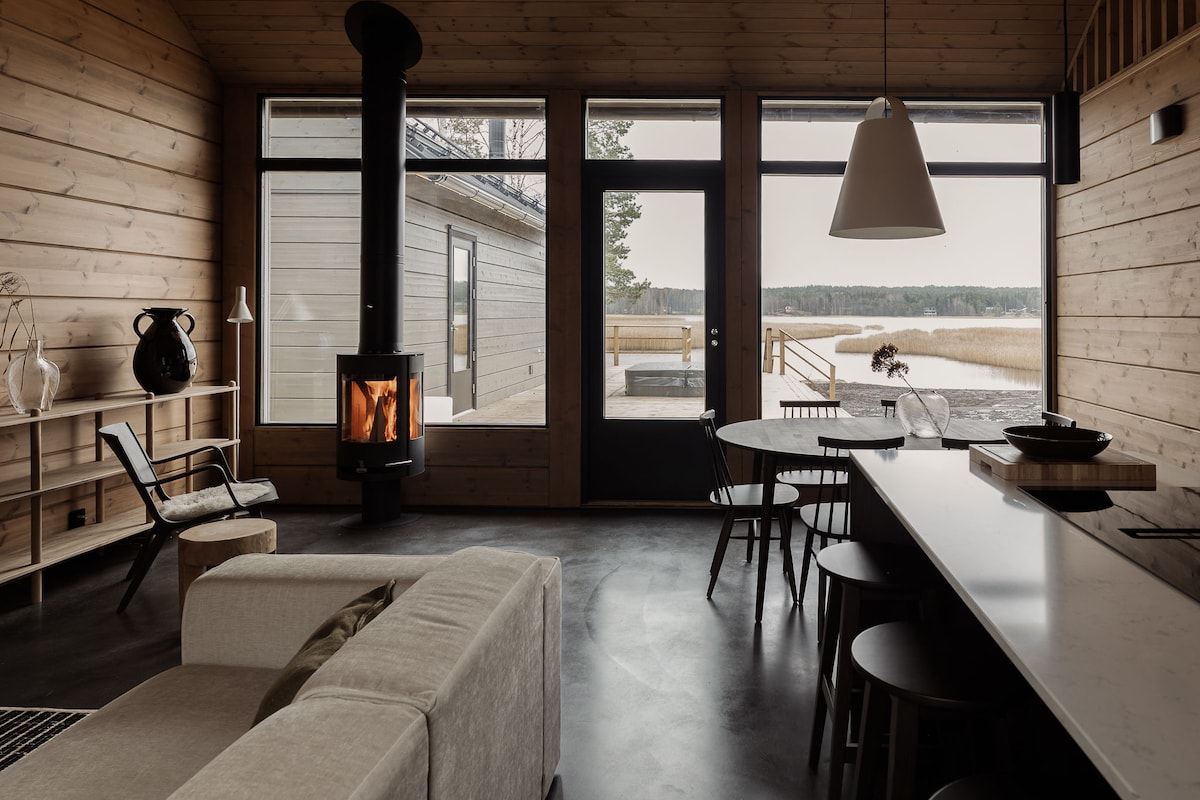 Our cabin is newly renovated and comes with the luxuries you'd expect in a modern home — all while sitting right on the water with a private beach, two saunas (an electric one inside and a wood-heated one by the water). A separate smaller cabin with a queen bed, a small fridge, and a TV gives another couple (or your teen) privacy. The cabin is just a 15-minute drive from large grocery stores and all the shops and restaurants of the historic town of Porvoo, and only 45 minutes from the airport!