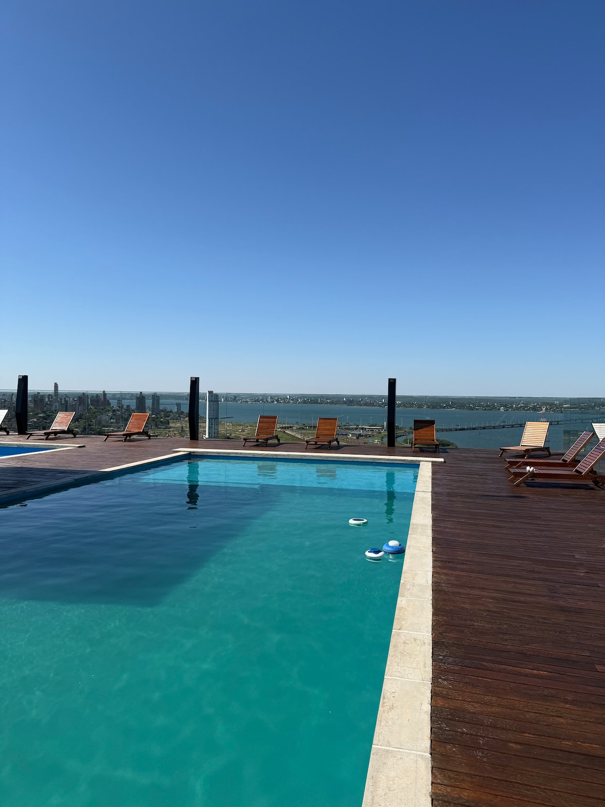 Muy bien ubicado, con cochera cubierta, baño en suite, living/comedor espacioso, luminoso, parrilla eléctrica en el balcon, piscina en la terraza, muy seguro.