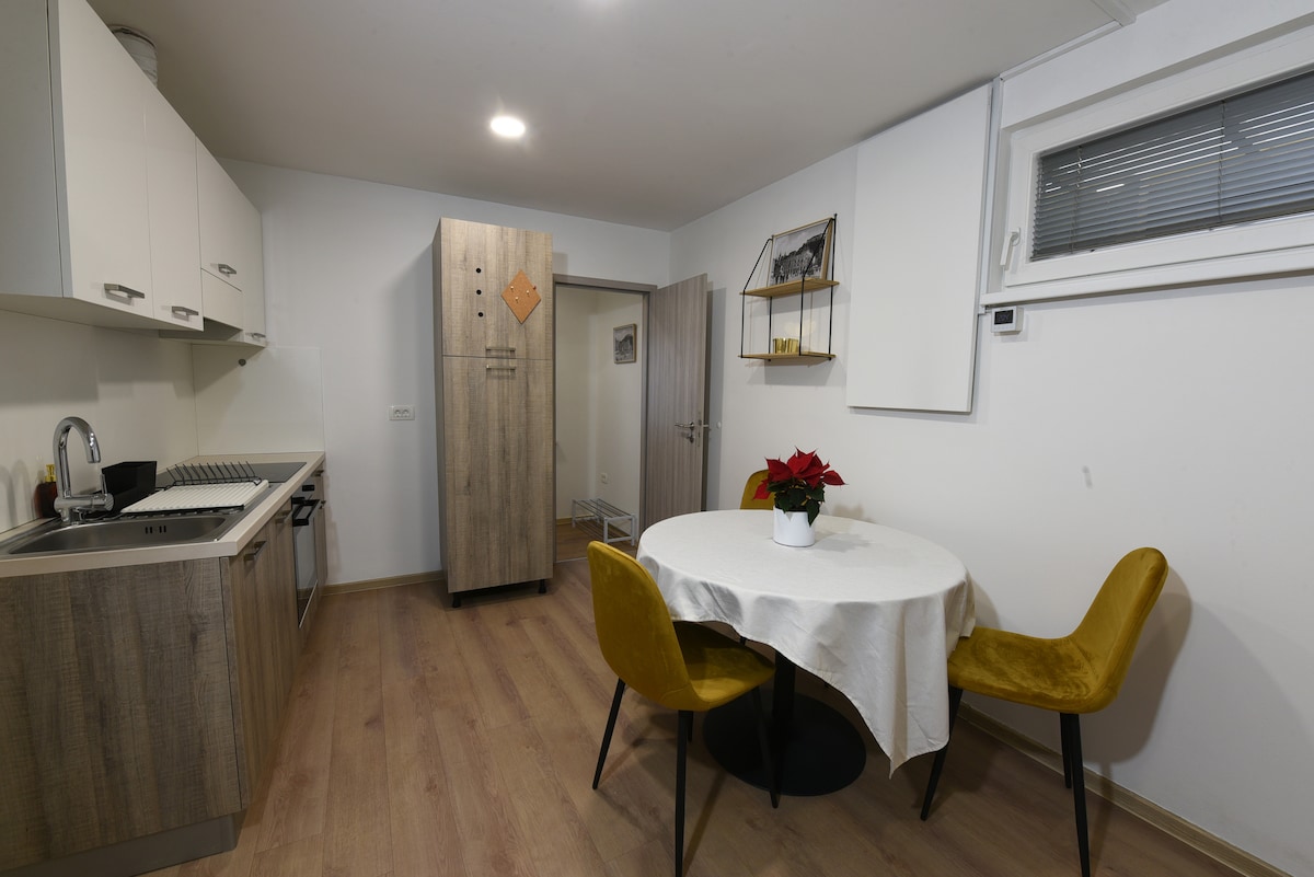 Modern studio surrounded by local hills, next to the highway ring, great starting point for exploring Slovenia. It is located only 15 minutes from the center and airport. Railway station is in 50 m range and bus station in 300 m. Apartment offers self check-in and is located on the 1st floor. Residence has free parking space and electric charging station. The kitchen is fully equipped, towels are provided. Tax (3.13 eur per day per person) is paid at the accommodation.