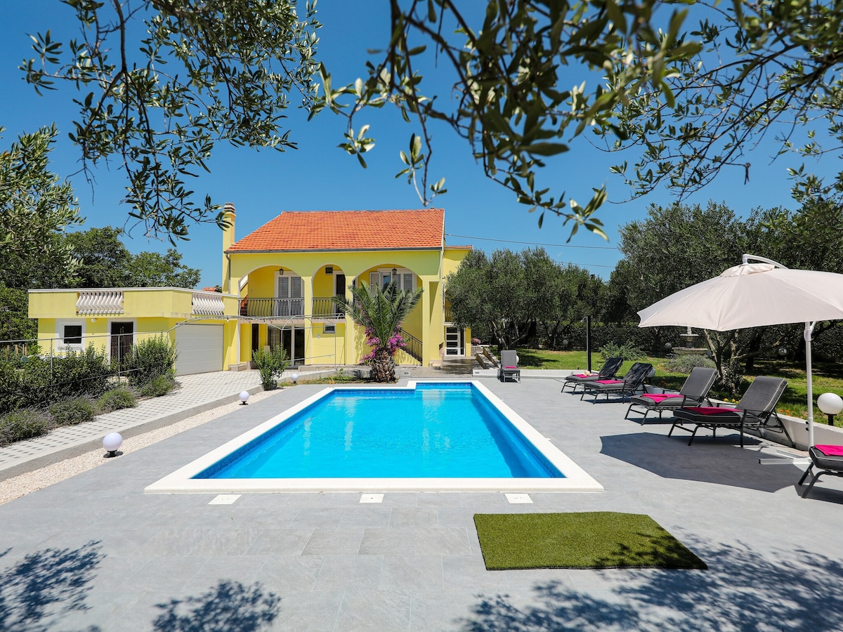 Forget your worries in this spacious and serene space. Villa is surrounded by trees,peace and quiet. Ideal for family vacation filled with relaxation and carefree enjoyment.Relax by the pool,take a walk or a bike-drive through woods and meadows,let kids enjoy the playground,make a barbecue for family and friends,or relax in a jacuzzi.Explore 1 of 4 national parks nearby,try out dalmatian cuisine on a night out,discover different beaches in vicinity.