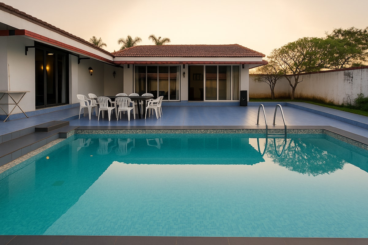 Escape to peace & togetherness with your loved ones, including your furry friend, at this charming & modern 2BHK air-conditioned chalet. Nestled in nature & spread across 3,000 sq. ft.,this serene villa is perfect for family getaways,comfortably accommodating up to 8 guests. Whether you're seeking relaxation or a romantic escape,the villa is fully equipped with amenities to ensure a fun-filled stay.Unwind in style, create lasting memories at Riodeevillas (Your Home Away From Home)