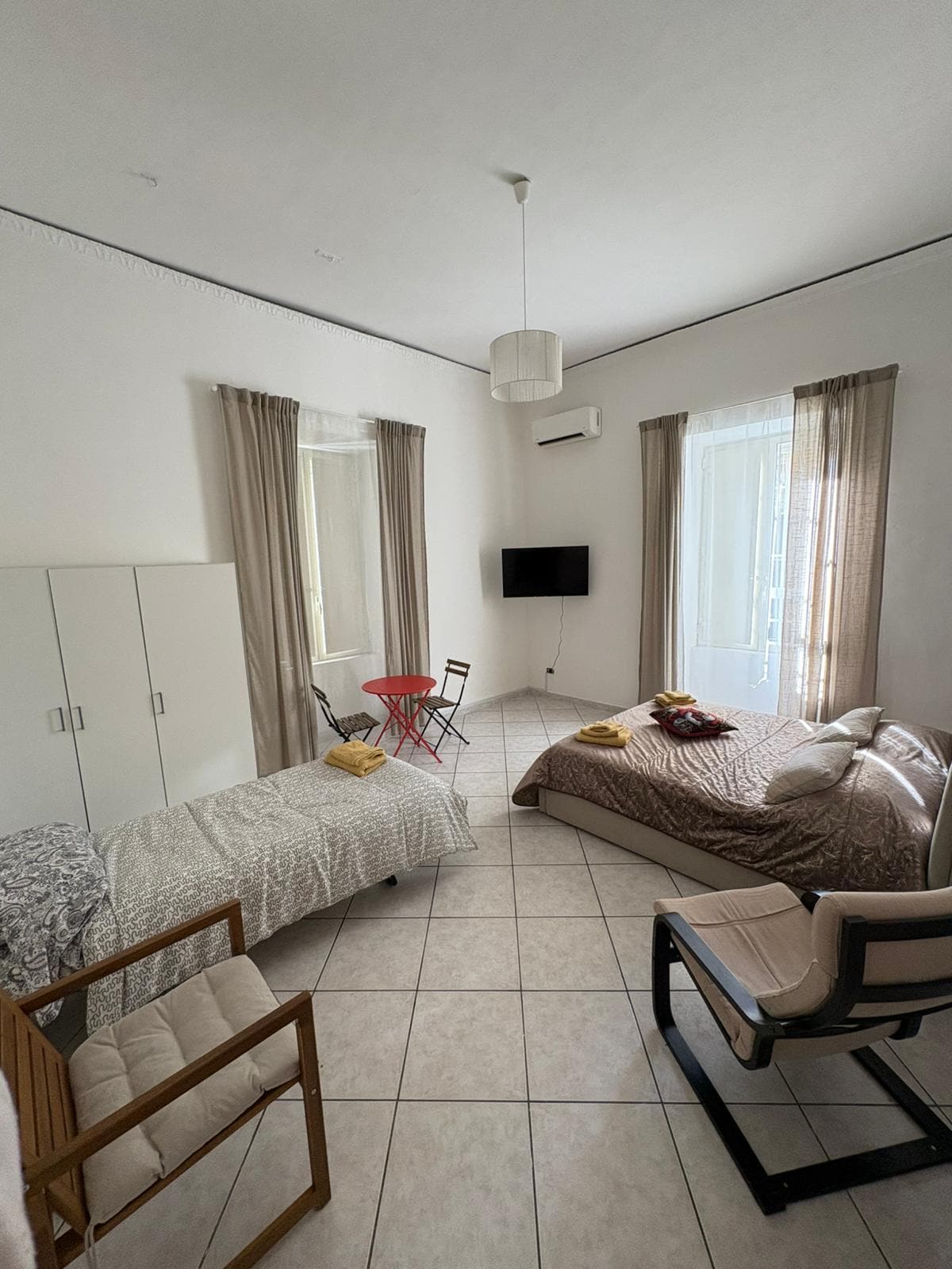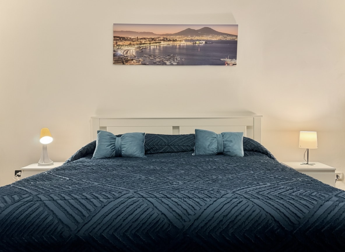 Luminoso appartamento di 100mq recentemente ristrutturato, situato al terzo piano senza ascensore di un palazzo antico, ubicato nel cuore dei Quartieri Spagnoli, a pochi passi dal centro storico. La casa è composta da: 3 camere doppie con bagno privato, area comune cucina/living, locale lavanderia con lavatrice a disposizione degli ospiti, terrazzo attrezzato di 130mq con cucina in muratura ed accesso diretto dalla casa e vista dei tetti di Napoli, del Vesuvio e della Certosa di San Martino.