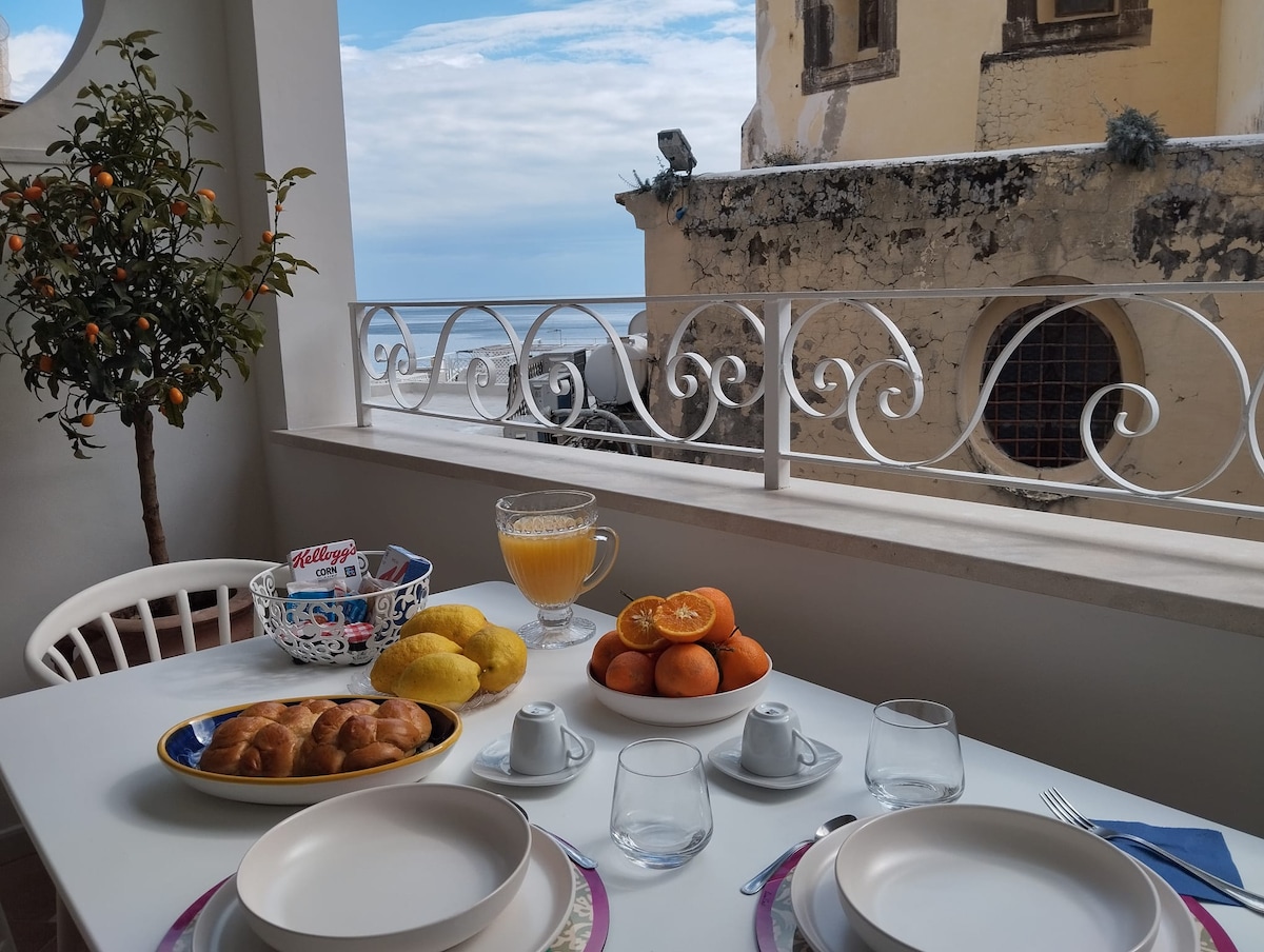 The beautiful apartment was completely renovatedin 2021.The apartment is located on the second floor of an ancient building without elevator. The apartment is tastefully furnished in Mediterranean style,and includes a double bed sitting area, full kitchen marble table and 4 chairs,large wardarobe, 1 television and it is equipped with all the conforts and service, heating and air conditioning,internet wifi.The apartment overlooking the sea with stunning views of the Sorrento Peninsula