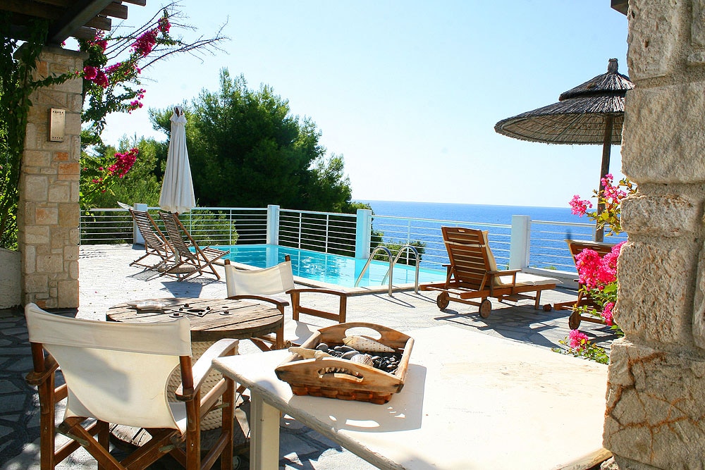 Please note: the property does not include access to a pool. The villa offers a large private garden and outdoor lounging areas. Enjoy the breathtaking view of this amazing Villa. It is located in Posidi Chalkidiki, 2 minutes away by car from the beach. The villa has 3 bedrooms, living room, fully equiped kitchen, 2 bathrooms and one WC. 2 Car parking spaces available. There is a shared swimming pool but guests are not allowed to use it because it does not meet the necessary standards.
