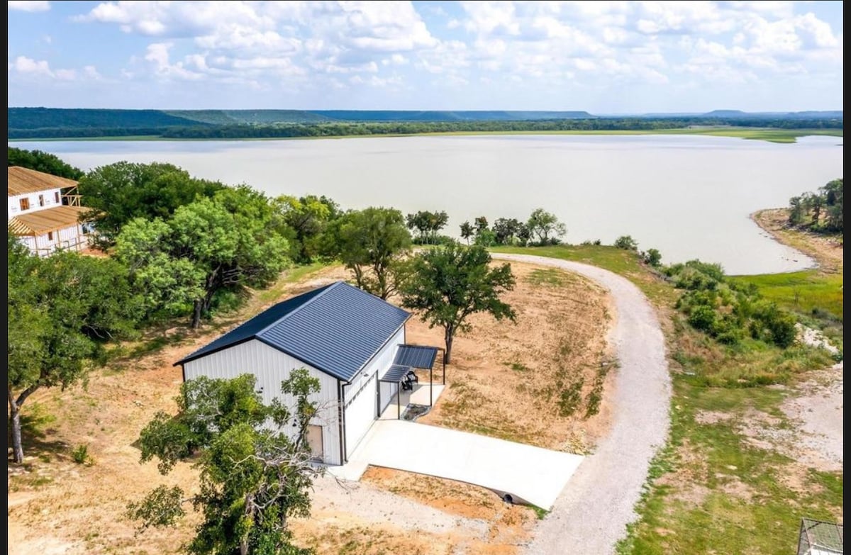 Escape the city for the rejuvenation of nature. This home (720 sf) sits on 14.5 acres with Brazos River access (private & community access). This gated community tucked in the Palo Pinto mountains has views that will take your breath away! After a day of fishing/swimming/kayaking (kayaks included), indulge in cooking dinner outside on the Blackstone followed by fire pit s'mores. Enjoy a cold drink on the porch swing or opt for ping pong, corn hole or games. You'll see cows, birds, & deer.