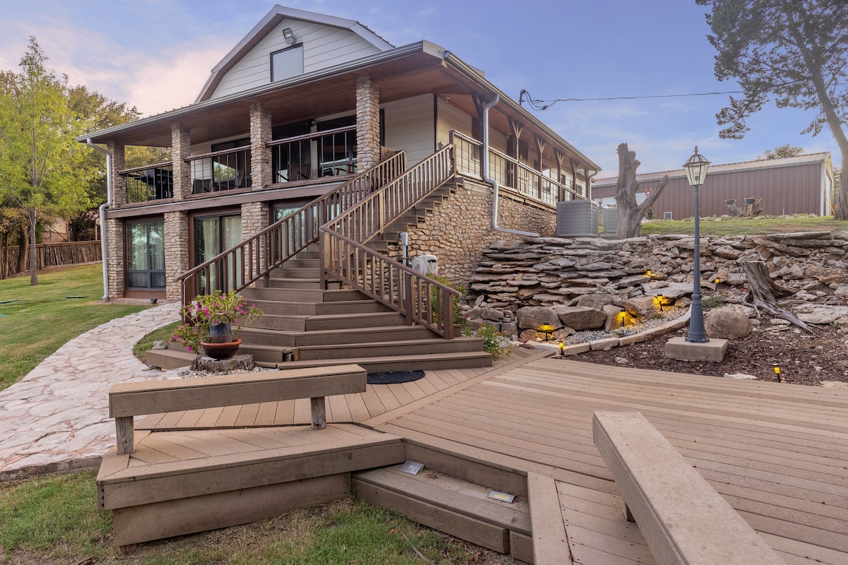 Possum Kingdom Lake!! Awesome place for large groups situated on almost 3 acres. The home is roughly 3,700 sqr feet complete with two outdoor entertaining areas including an outdoor stage and dance floor, multiple fire pits as well as a two story deck which is perfect for taking in the hill and lake views. Completely remodeled in 2018, this home boasts plenty of space with ample common areas including a pizza kitchen. Wheelchair accessible.