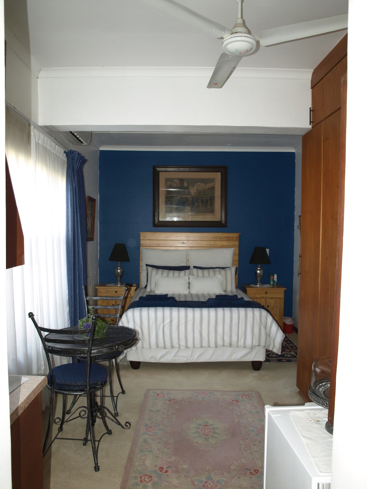 Lovely courtyard apartment in a quiet neighbourhood close to NWU & sports grounds and Centre for Health and Human Performance . Self catering accommodation with great little kitchen and en-suite bathroom. This room can host 2 people sharing a queen bed. Seating area inside and outside in the courtyard by the fountain. Additional outdoor seating in the front garden of the property. It has a little desk and Wi-Fi for those that need to get some work done.