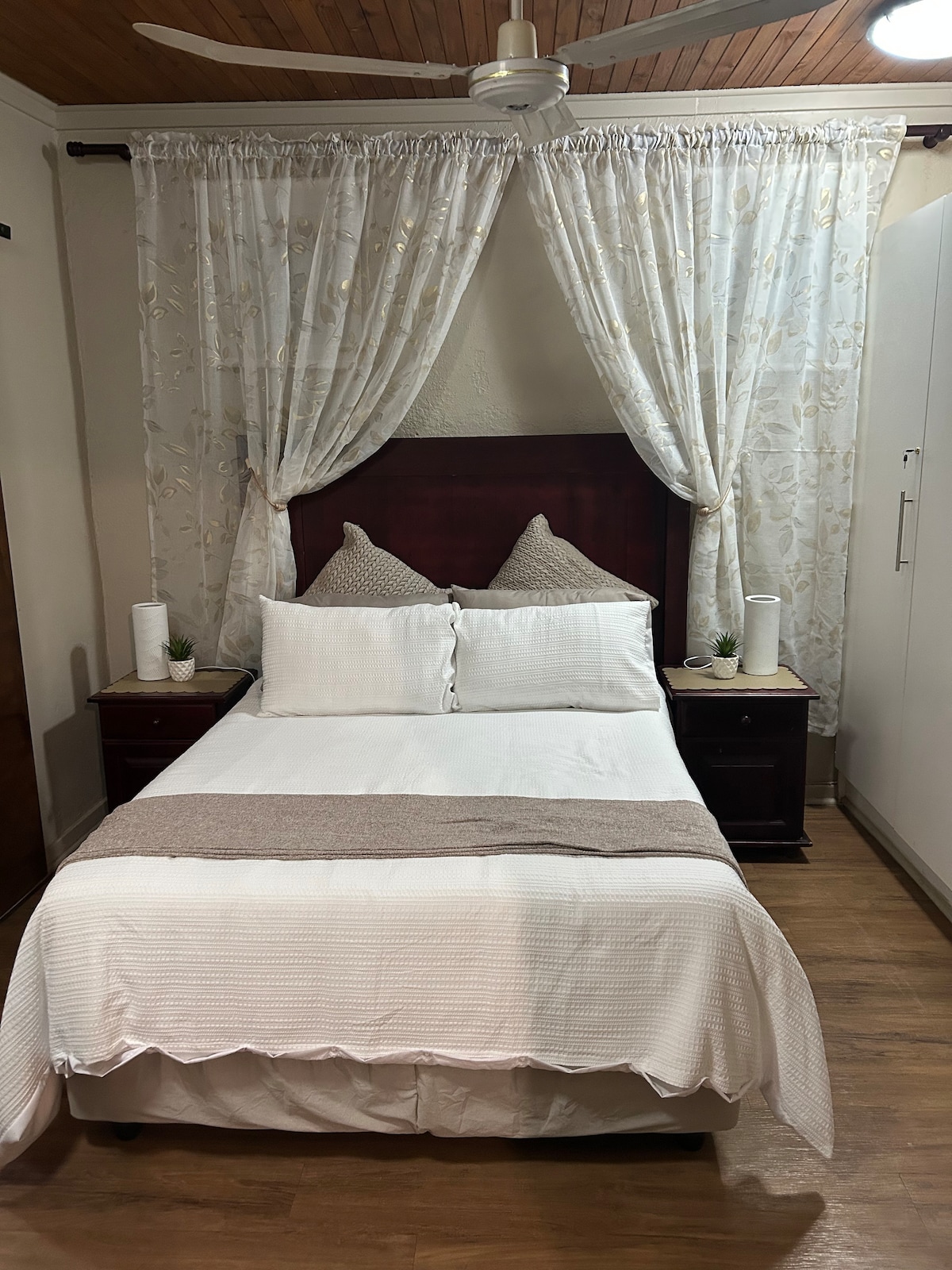 This modern & stylish self-catering cottage is situated in a safe residential neighborhood, next to the largest security company in town. It can comfortably host two adults, with an extra loft bed which can convert to 2 single or 1 queen bed - perfect accommodation for every person & family . The unit is detached from the main house on the property and has an en-suite bathroom with a shower, as well as a fully equipped kitchen. Secure gated parking . WiFi, DSTV & Netflixs are also available.