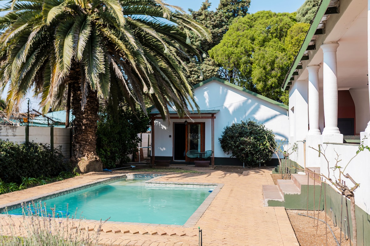 Lovely courtyard apartment in a quiet neighbourhood close to NWU & sports grounds and Centre for Health and Human Performance . Self catering accommodation with great little kitchen and en-suite bathroom. This room can host 2 people sharing a queen bed. Seating area inside and outside in the courtyard by the fountain. Additional outdoor seating in the front garden of the property. It has a little desk and Wi-Fi for those that need to get some work done.