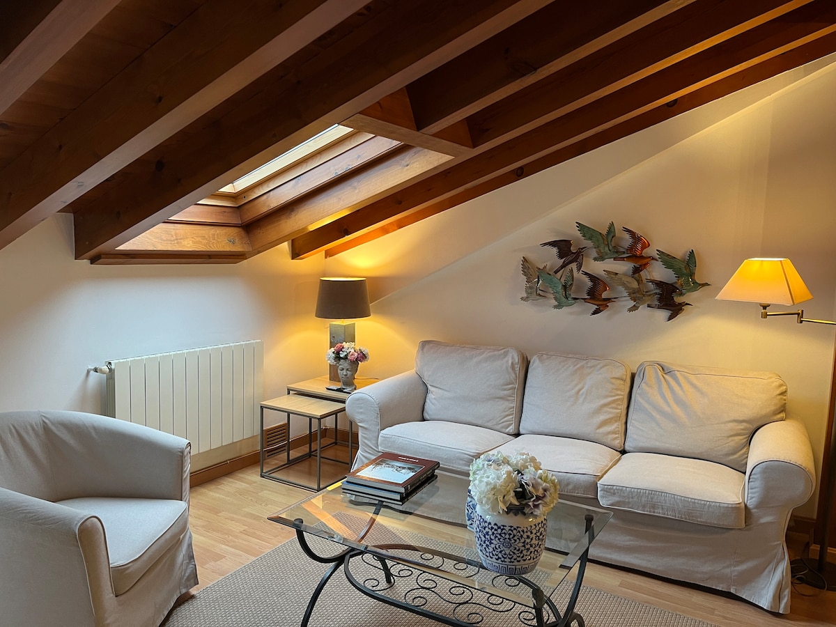 Spacious and unique one-bedroom apartment with jacuzzi, living room with fireplace and private garden. Comfortable living room with two rooms and a fireplace. American kitchen equipped with kitchenware and appliances. Bedroom with a 150 cm bed and double jacuzzi incorporated into the bedroom. Bathroom with shower. Private garden with Balinese swing and porch. Capacity 2 people and possibility of 2 more people on sofa bed. Access to heated pool and Spa.