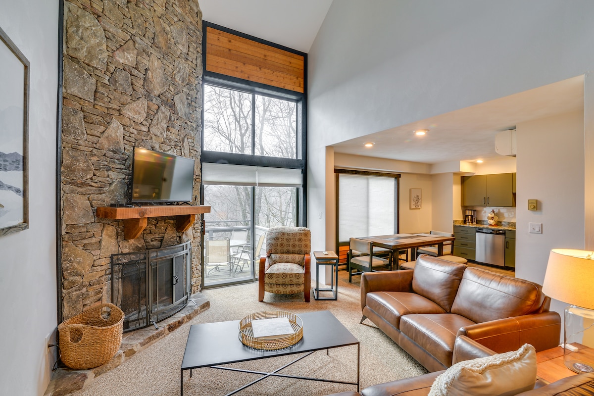 温特格林度假村公寓,带露台,距离雪道0.3英里