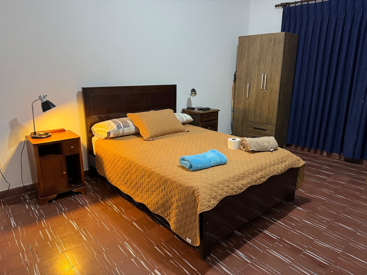 Disfruta de la sencillez de este apartamento tranquilo y céntrico, ubicado en una calle principal del Centro Histórico por donde pasa transporte público, se encuentra a 3 cuadras del mercado central y a 5 de la plaza principal, a pocos pasos de servicio de lavandería, comercios y restaurantes. La casa cuenta con una entrada segura y un patio común del que puedes disfrutar. No se permiten fiestas, ni reuniones ruidosas. Se les proporciona toallas , shampoo y jabón.