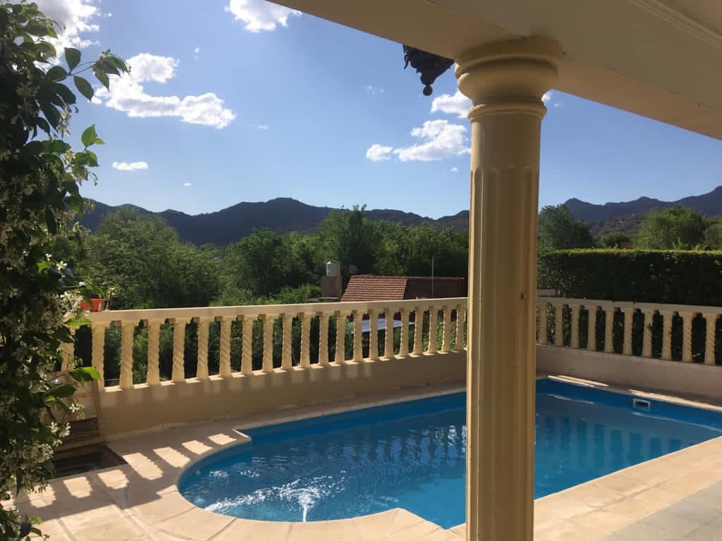 Divertite con toda la familia en este alojamiento con estilo. Disfruta de la hermosa vista a las sierras desde cada parte de la casa. Amplia pileta para que disfruten todas las edades. Ubicado a 4 cuadras del circuito, zona de restaurantes y comercios. Amplia Terraza para disfrutar la vista a las sierras.
