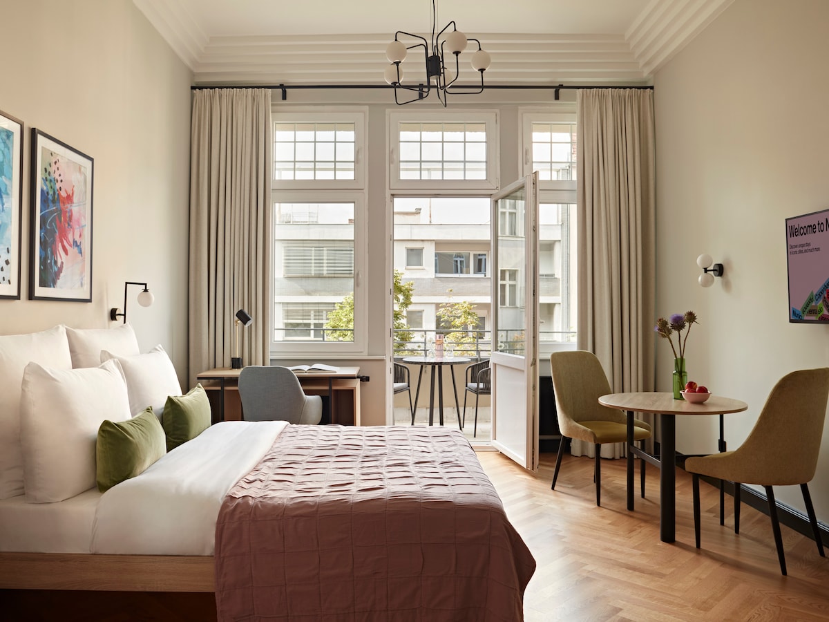This modern, luxurious room offers one bedroom across 22 sqm of space. Ideal for up to two people, its king-sized bed and modern shower make this stay a perfect way to experience Berlin. The room also offers sustainable coffee, a kettle and a mini fridge, so you’ll have everything you need for maximum comfort and minimal stress.