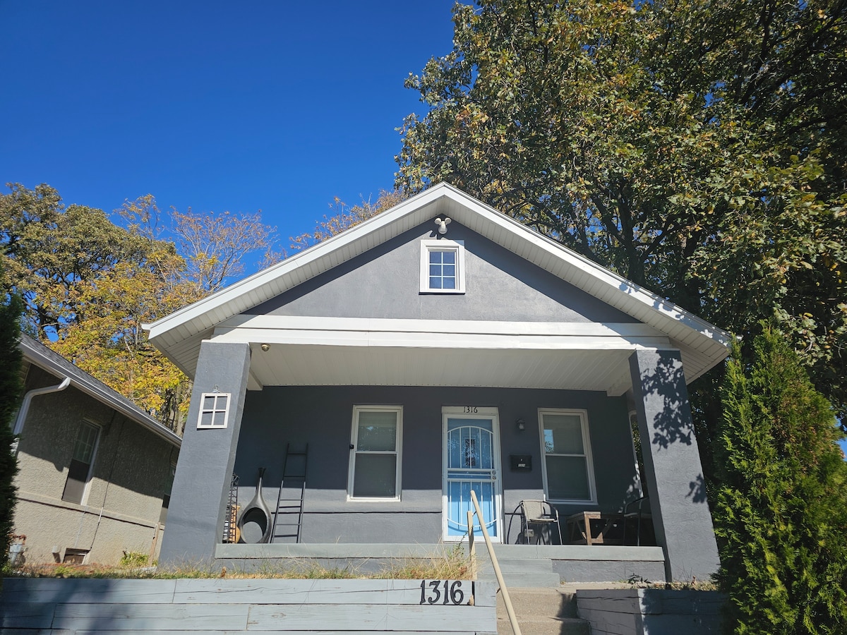 The best of what Omaha has to offer-a one level hardwood floor midtown house with fenced yard located between 2 coveted neighborhoods, Dundee and Benson, in a safe and quiet area. One mile to Memorial Park, UNO, Dundee, Benson and a few miles from the interstate, downtown, and zoo, yet situated in a quiet and safe alcove. Newly remodeled kitchen and bathroom and hosted by a professional. Large flat driveway, garage access, 3 bedrooms with king sized bed in master, fenced yard, low cleaning fee.
