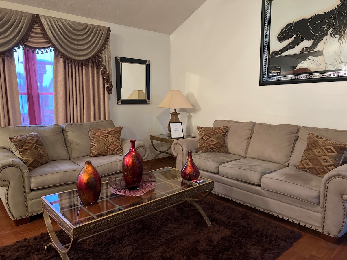 Massive walkout basement apartment in a peaceful and central Omaha neighborhood where you will enjoy: • Off street driveway parking • Private entrance • Enormous 65” TV and spacious living room • Private kitchen • Private bathroom • Private laundry access • Large King bed • Walkout patio access
