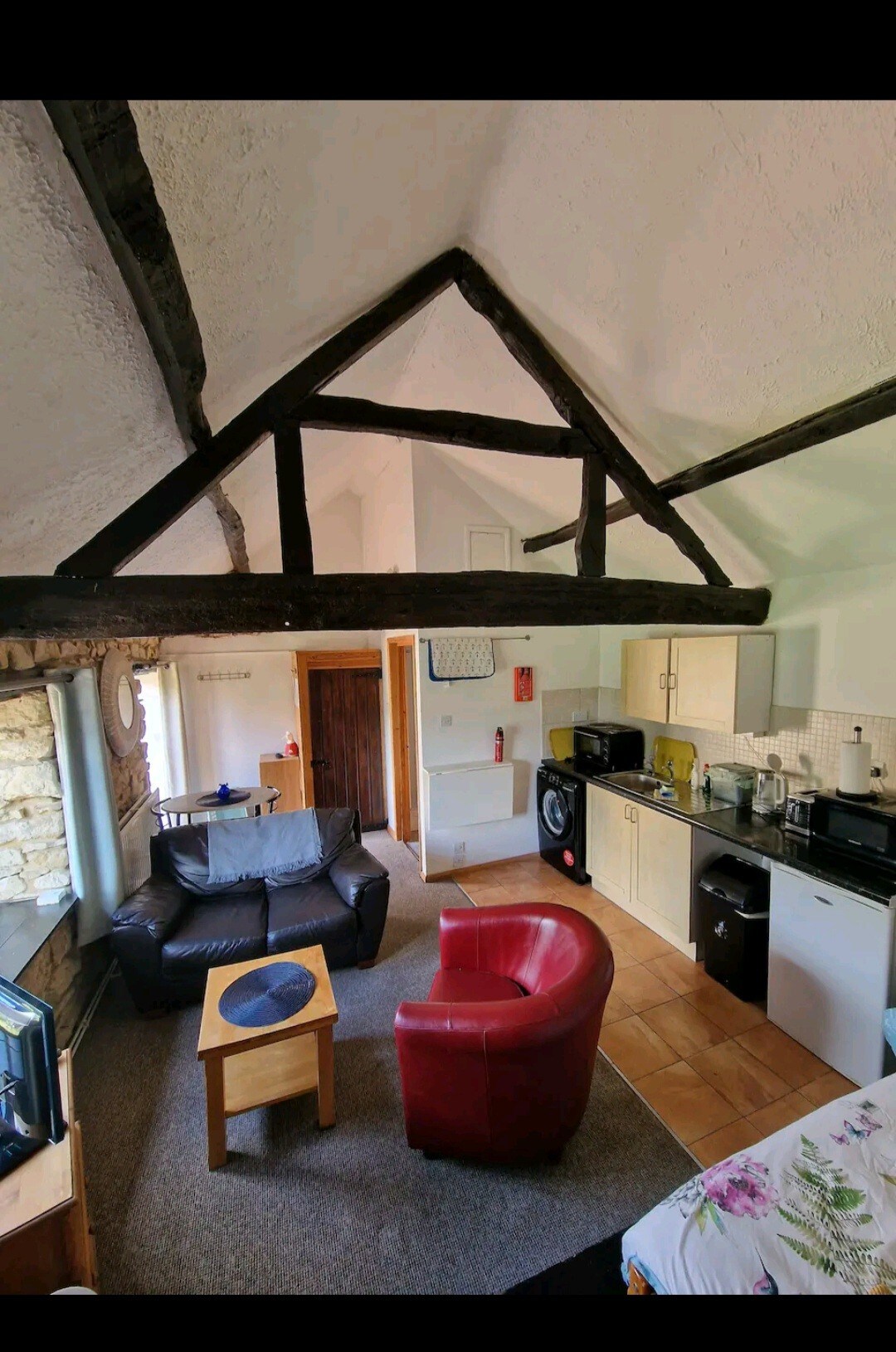 On a farm in the South Northamptonshire village of Wicken, this 3 bedroomed house is part of a beautiful Dutch Barn conversion. The curved roof barn has been carefully and thoughtfully converted, to provide comfortable and high quality accommodation. An open-plan upstairs kitchen/living/dining area gives amazing views of the surrounding countryside, while downstairs 3 good sized bedrooms are sure to provide you with a great nights sleep.