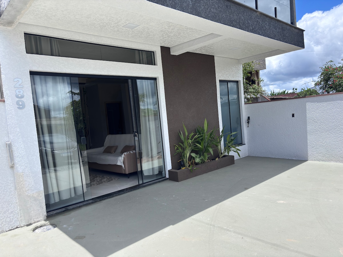 O melhor custo-benefício para família a 70m da praia Ideal para famílias e casais, com ambientes climatizados e área com churrasqueira perfeita para relaxar após a praia 🏠 Sala e cozinha integradas – Ambiente aconchegante e climatizado 🛏️ Suíte – Cama de casal com auxiliar de solteiro, colchão extra e ar-condicionado e wc 🛏️ Segundo quarto – Com ar-condicionado e acesso ao banheiro social 📶 Wi-Fi de alta velocidade – Ideal para home office
