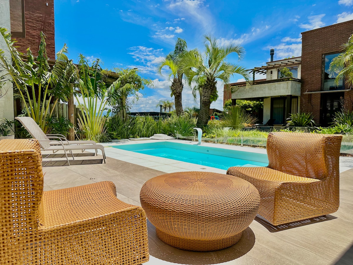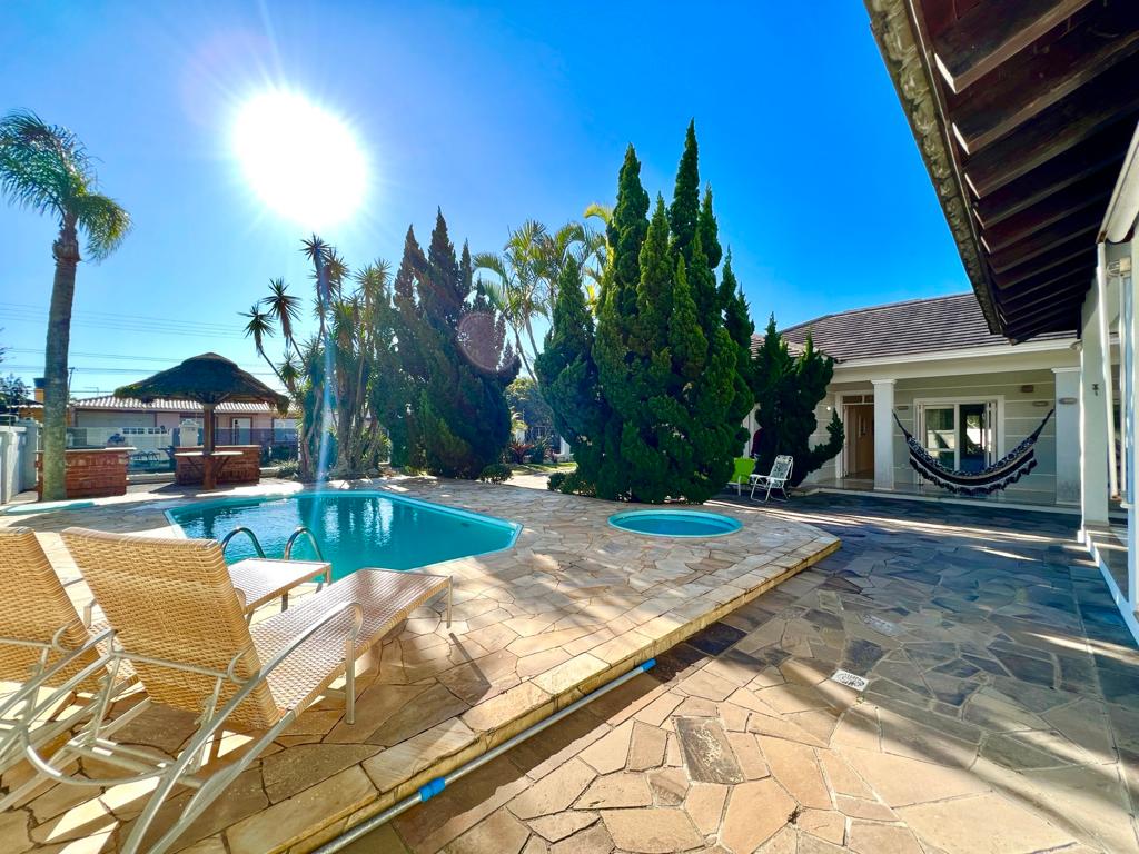 Casa com todo conforto e muito bem equipada com uma área externa Privativa com Piscina com Aquecimento Solar. Deck pergolado integrado com móveis modernos. E um salão de festas equipado com acesso a piscina e com espaço gourmet com churrasqueira e cozinha completa. Na parte interna possui ar condicionado em todos os quartos. Na sala possui lareira, cozinha completa mais uma churrasqueira excelente com exaustão. obs:Piscina só aquece com sol forte, somente no alto do verão, e dia sem vento.