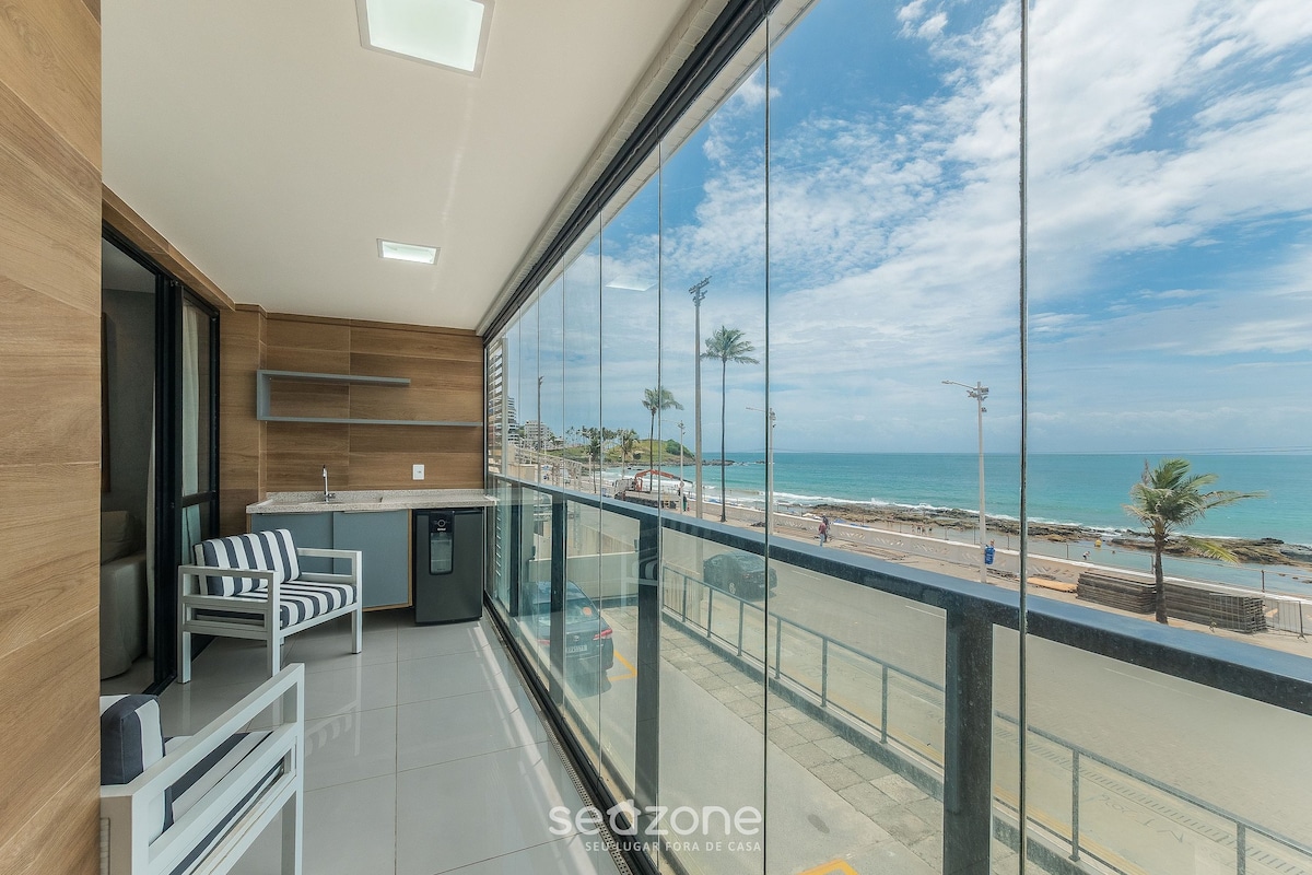 An apartment on the seafront of Barra beach, just a few minutes from the Lighthouse and close to the city's main tourist attractions. Full of style and with refined decoration, the apartment has a private terrace fully integrated into the living room, with a garden, sun deck and shower for sunny days. Inside a new and well-equipped building, it is very close to an excellent network of services, and offers a privileged view of the Carnival circuit. Ideal for couples or groups of up to 4 people.
