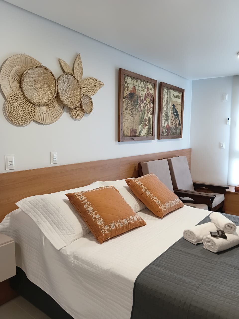 Apartamento de excelente padrão, construção nova, com piso flutuante, porcelanato, Tv a cabo (Net), internet e decoração moderna. Localização privilegiada a 100 metros da estátua de Iemanjá e da praia. Conta com uma vaga de estacionamento e espaço gourmet com churrasqueira (do Condomínio). Pátio de estacionamento murado, com cerca elétrica e acesso por portão automatizado. Acomoda até 3 pessoas. Conta com dois ventiladores e todos os utensílios de cozinha.