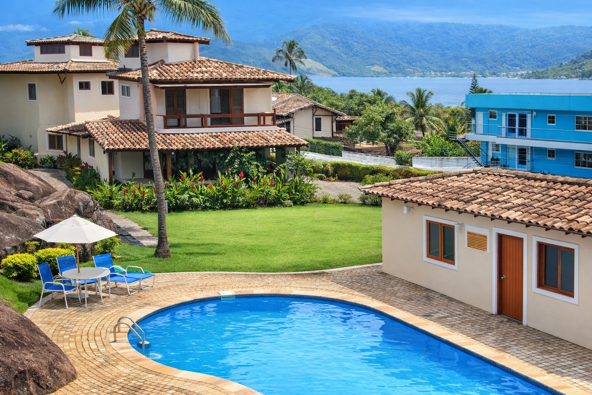🌿 Mirante da Jana – Refúgio em Ilhabela Aqui você desacelera e se reconecta com a natureza. Acomodação aconchegante, ideal para quem busca privacidade, tranquilidade e conforto. São 6 unidades em 2 terrenos: 🌊 Lado mar: 2 chalés com vista e ofurô e piscina ⛰️ Lado montanha: 4 casas privativas com hidromassagem (este anúncio, sem vista) ✨ Hidro privativa ✨ Privacidade e tranquilidade ✨ Ambiente acolhedor e bem equipado Da piscina compartilhada, desfrute da vista deslumbrante do mar.