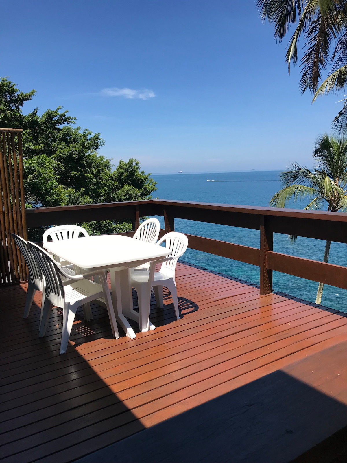 Casinha charmosa e aconchegante de costeira, construida em harmonia com a natureza e o mar. É um verdadeiro paraíso para quem busca sossego, exclusividade e privacidade. O acesso direto ao mar pela costeira é uma raridade na Ilhabela e esse privilegio é apenas para os nossos hospedes. Esse acesso é feito por escadas confortaveis onde temos um deck de madeira com ducha. A casa é cercada pela mata original que é residencia de uma grande variedade de passaros e animais silvestres.