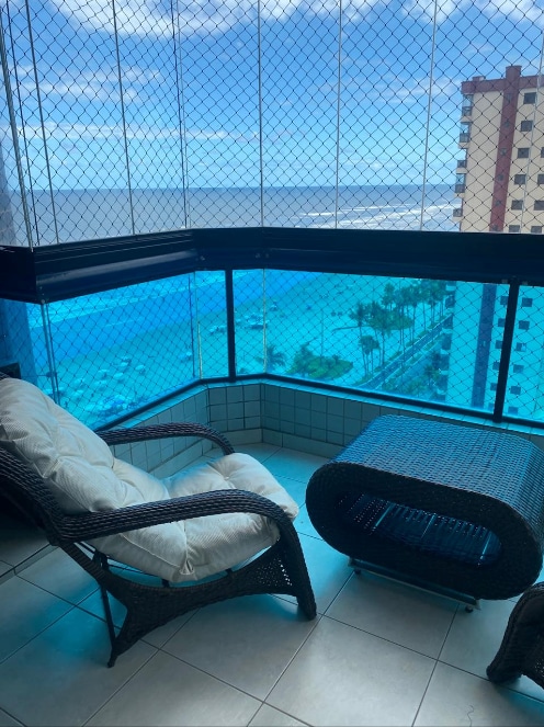 Vista privilegiada. De frente por mar, atravessou a rua está na areia da praia. Apto de 40 m2, arejado, claro, móveis práticos. Espaço aberto para melhor ventilação entre os cômodos . Wi-Fi Portaria 24 horas sem vaga na garagem mas facilidade de vagas nos arredores. Apto no 12° andar de frente para o mar. Utensílios de cozinha. Supermercado, padaria e outros comércios próximos