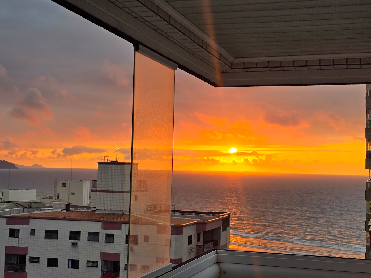 Oitavo andar, 2 elevadores Ventiladores em todos os cômodos,ar condicionado na sala,churrasqueira na varanda.Vista pro mar,1 quadra e meia da praia.... restaurantes.... barzinhos .... mercado, padaria ,farmácia,pet,da pra fazer tudo a pé.....Garagem 1, Móveis e utensílios,tudo que for necessário na cozinha.....,limpeza prioridade.....tudo entregue higienizado....cheiroso.... wi-fi....tv smart. Tv em um dos quartos. Toda energia da casa e 110wats