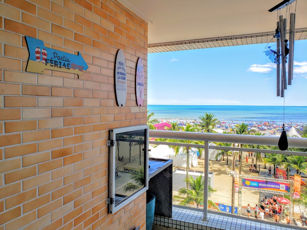 Apê Vista Mar c/ Varanda Chef + A/C + Vaga e Wi-Fi